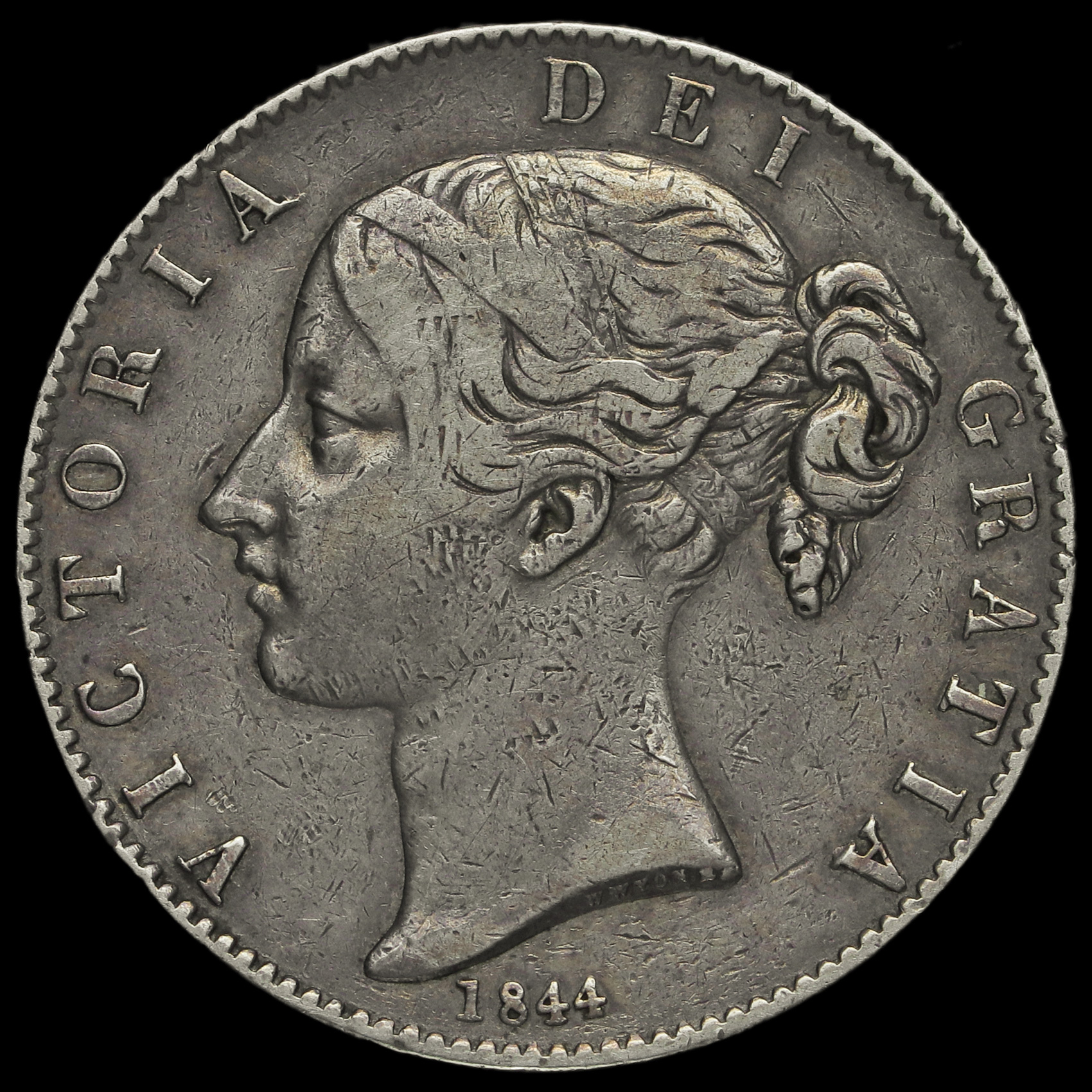 1844 Queen Victoria Young Head Silver Crown, Cinquefoil Stops