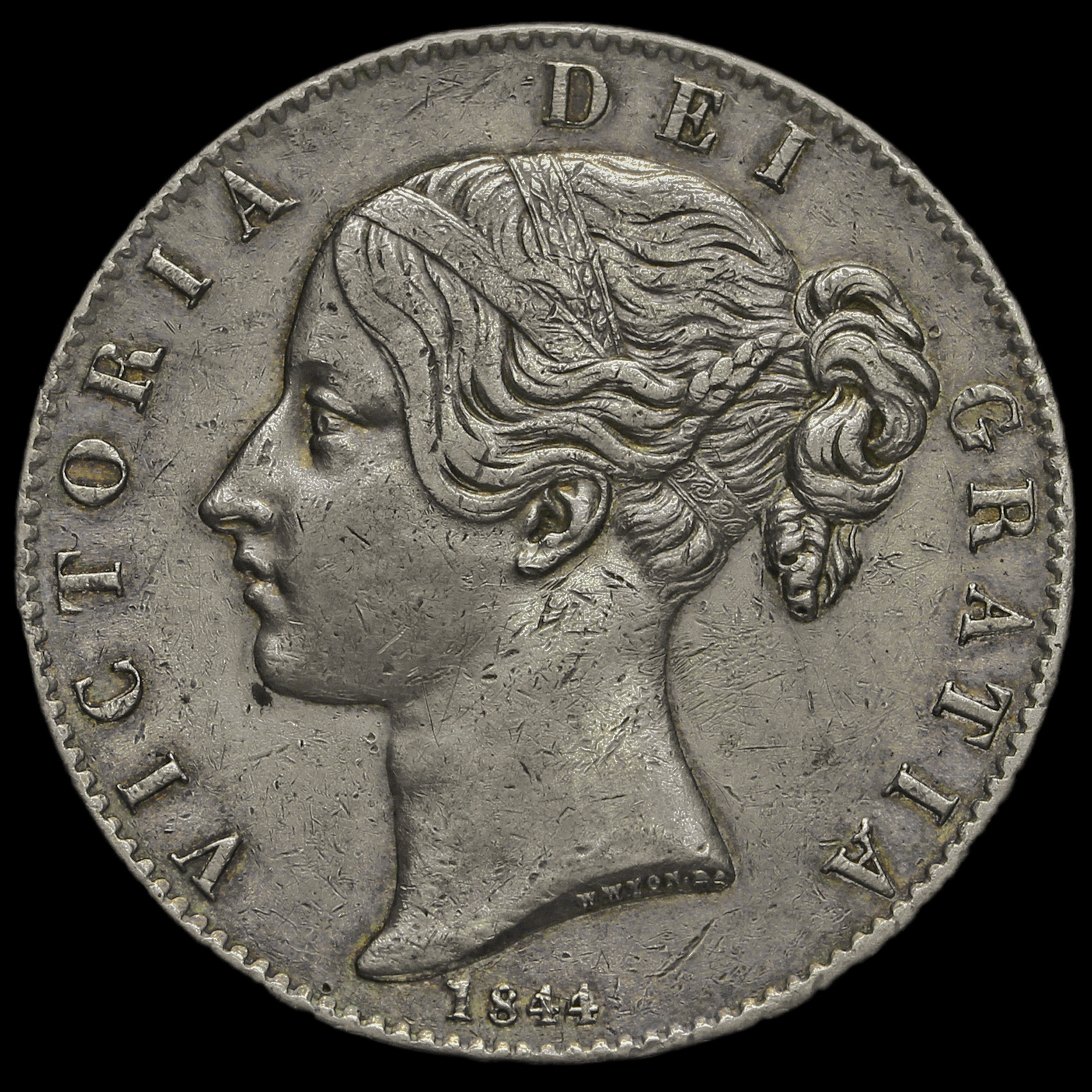 1844 Queen Victoria Young Head Silver Crown, Star Stops, VF / GVF
