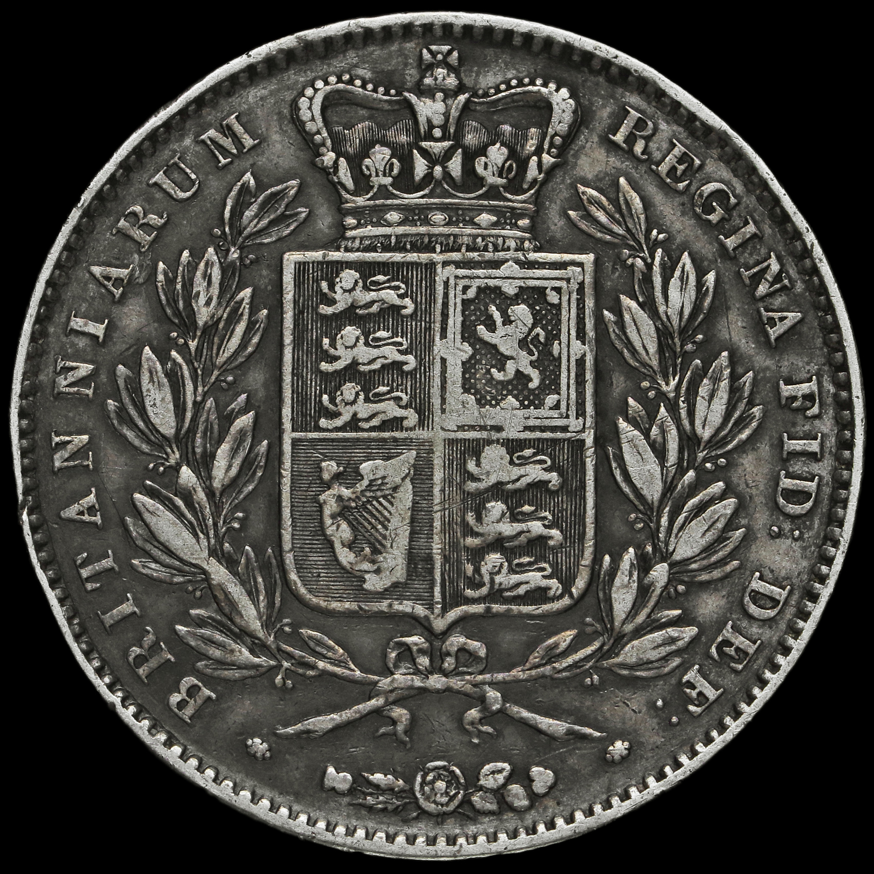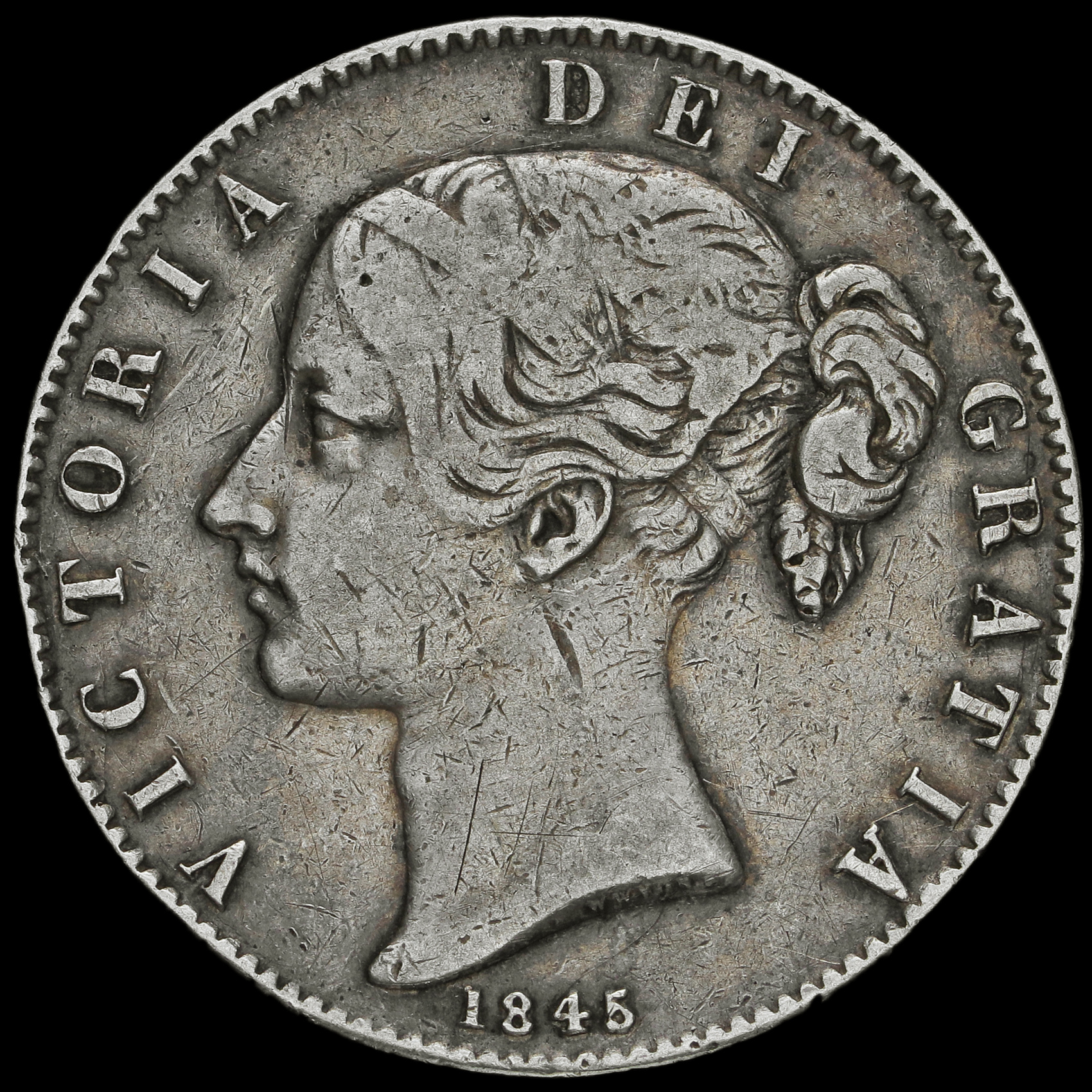 1845 Queen Victoria Young Head Silver Crown, Cinquefoil Stops, AVF