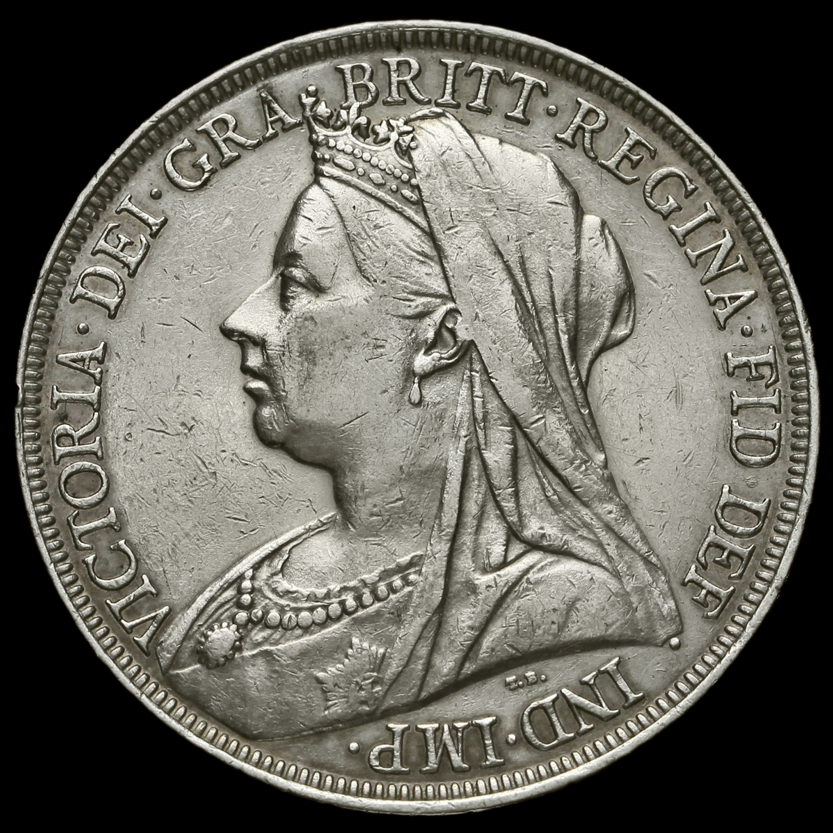 1895 Queen Victoria Veiled Head Silver LIX Crown, GVF