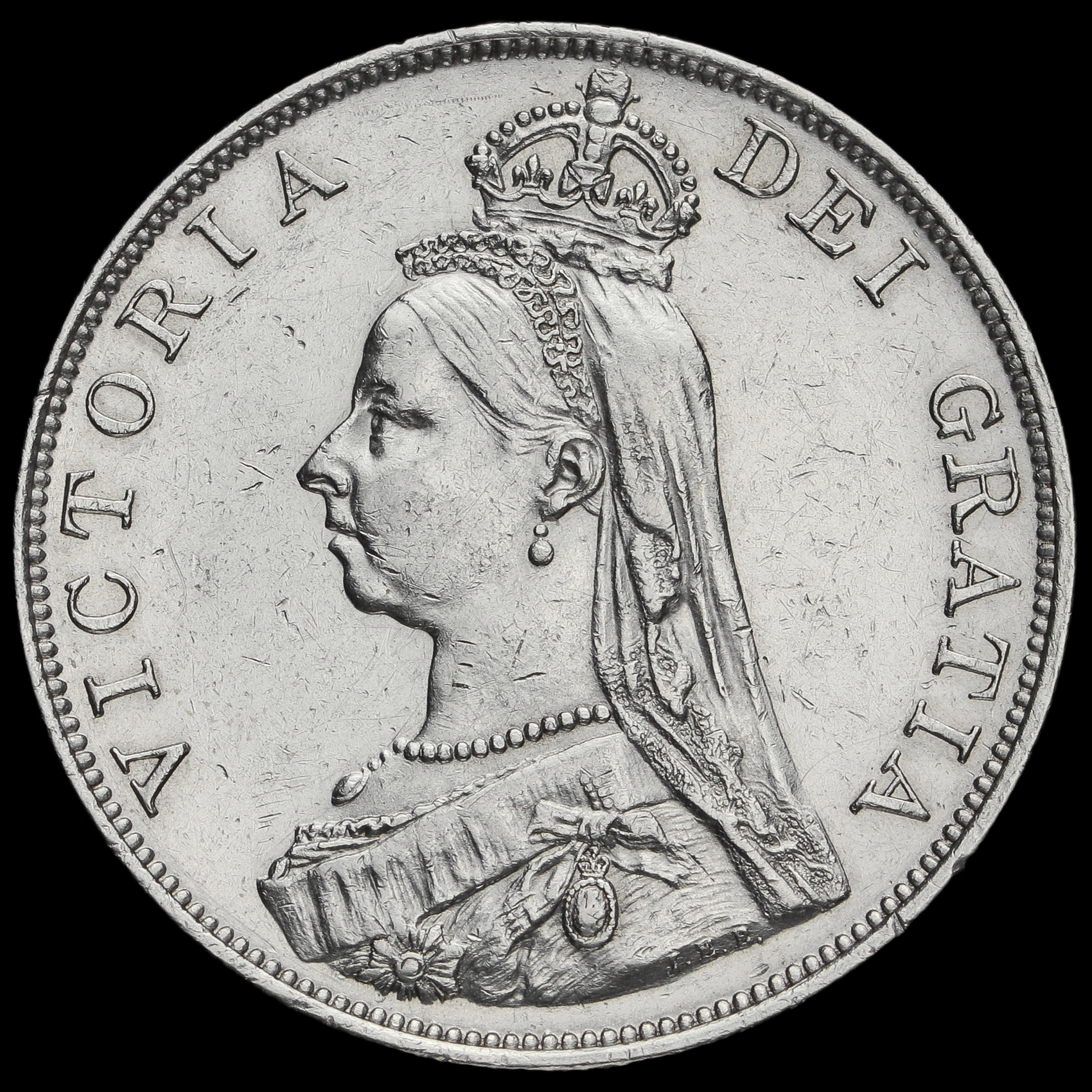 1889 Queen Victoria Jubilee Head Silver Double Florin, A/UNC