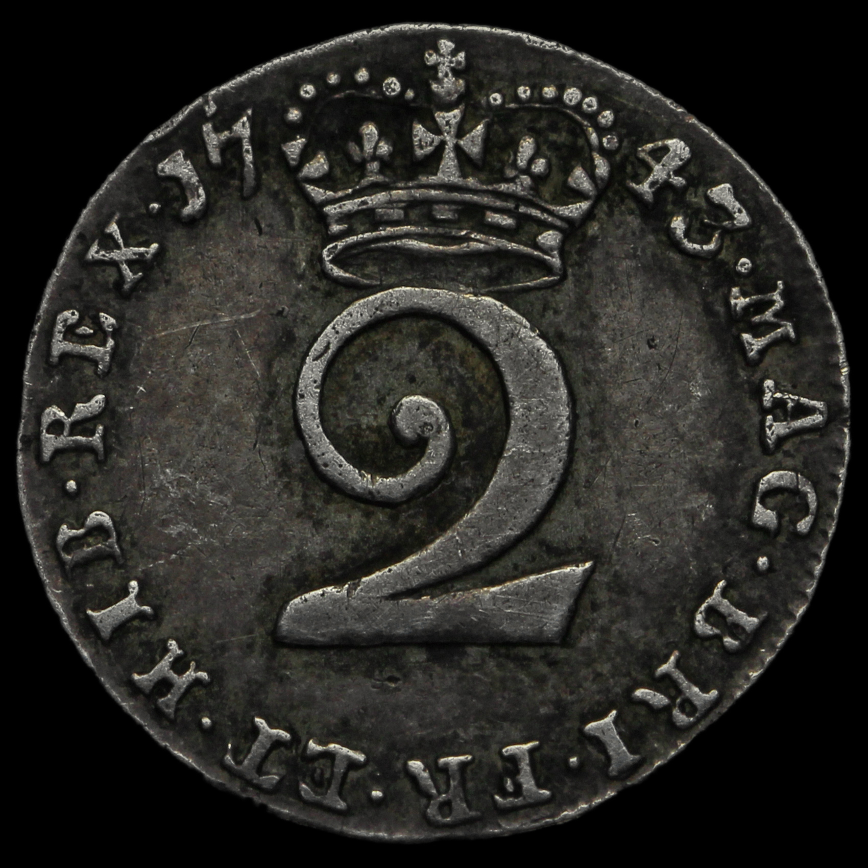 1743 George II Early Milled Silver Maundy Twopence