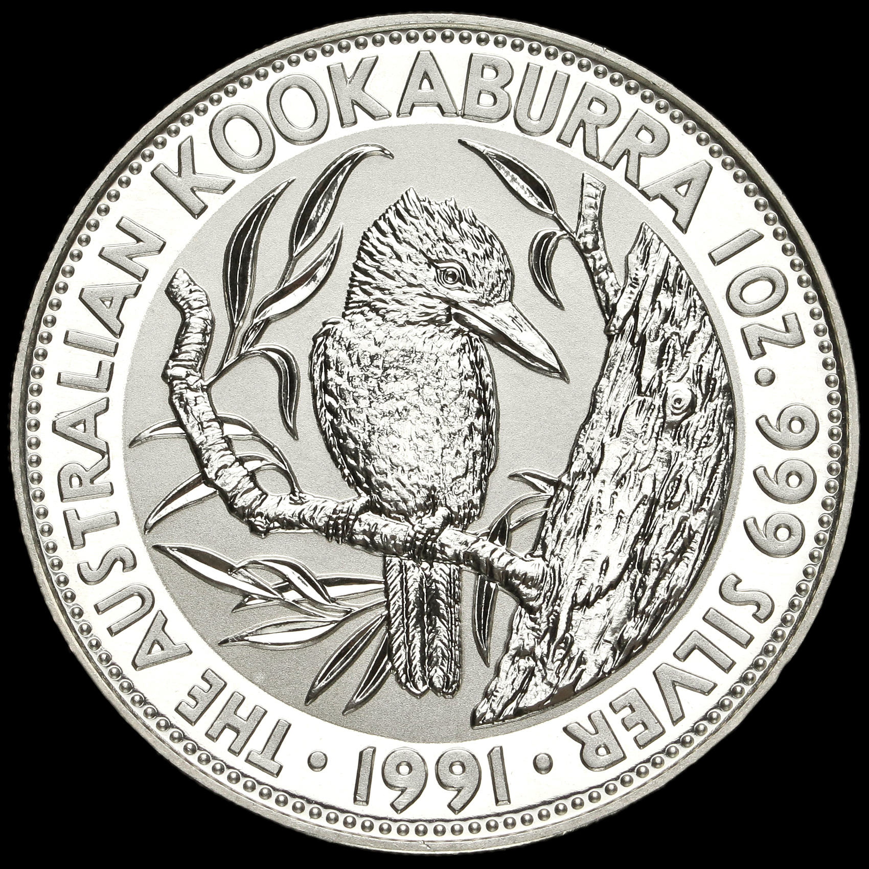 Australia 1991 1 Troy Ounce .999 Silver 5 Dollar Kookaburra Coin