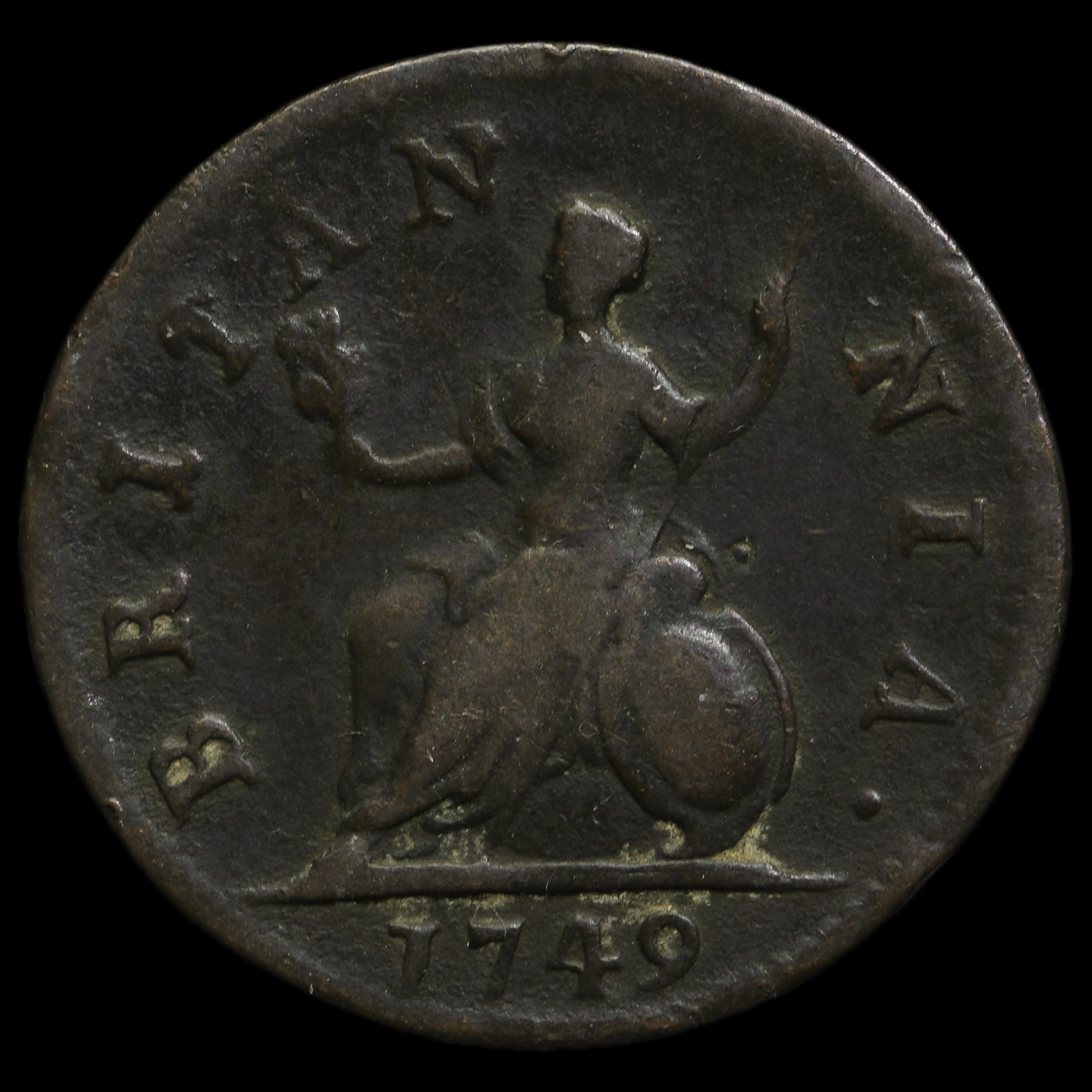 1749 George II Early Milled Copper Farthing