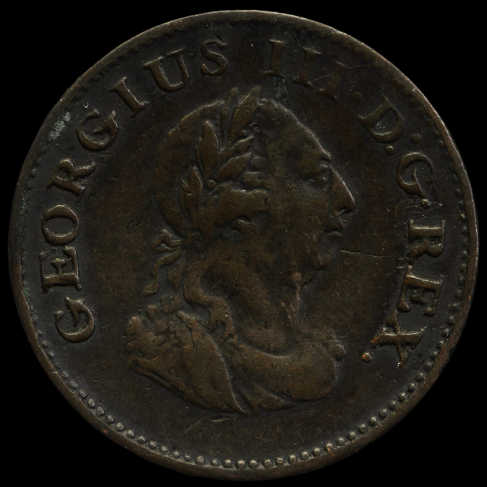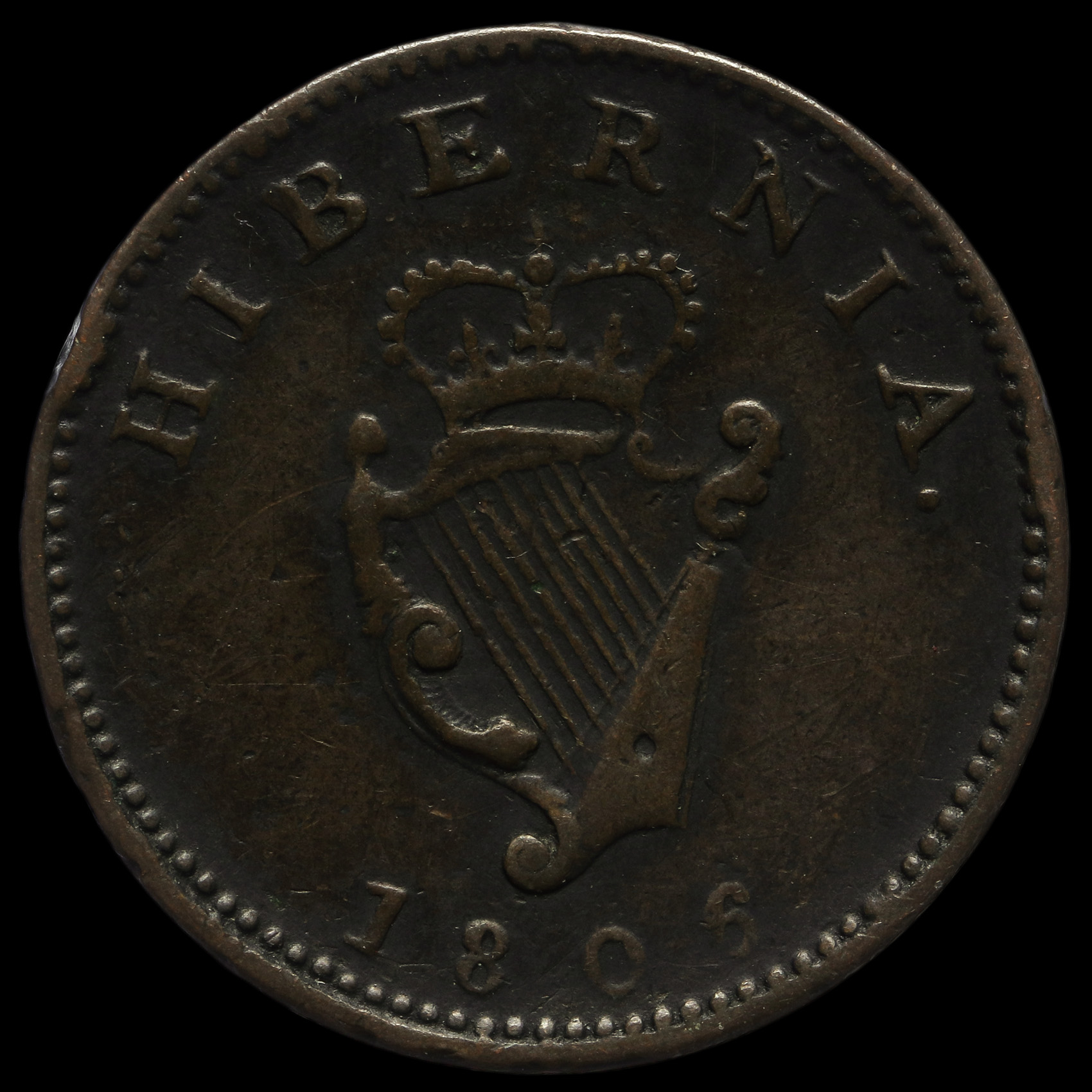 Ireland 1806 George III Early Milled Copper Farthing