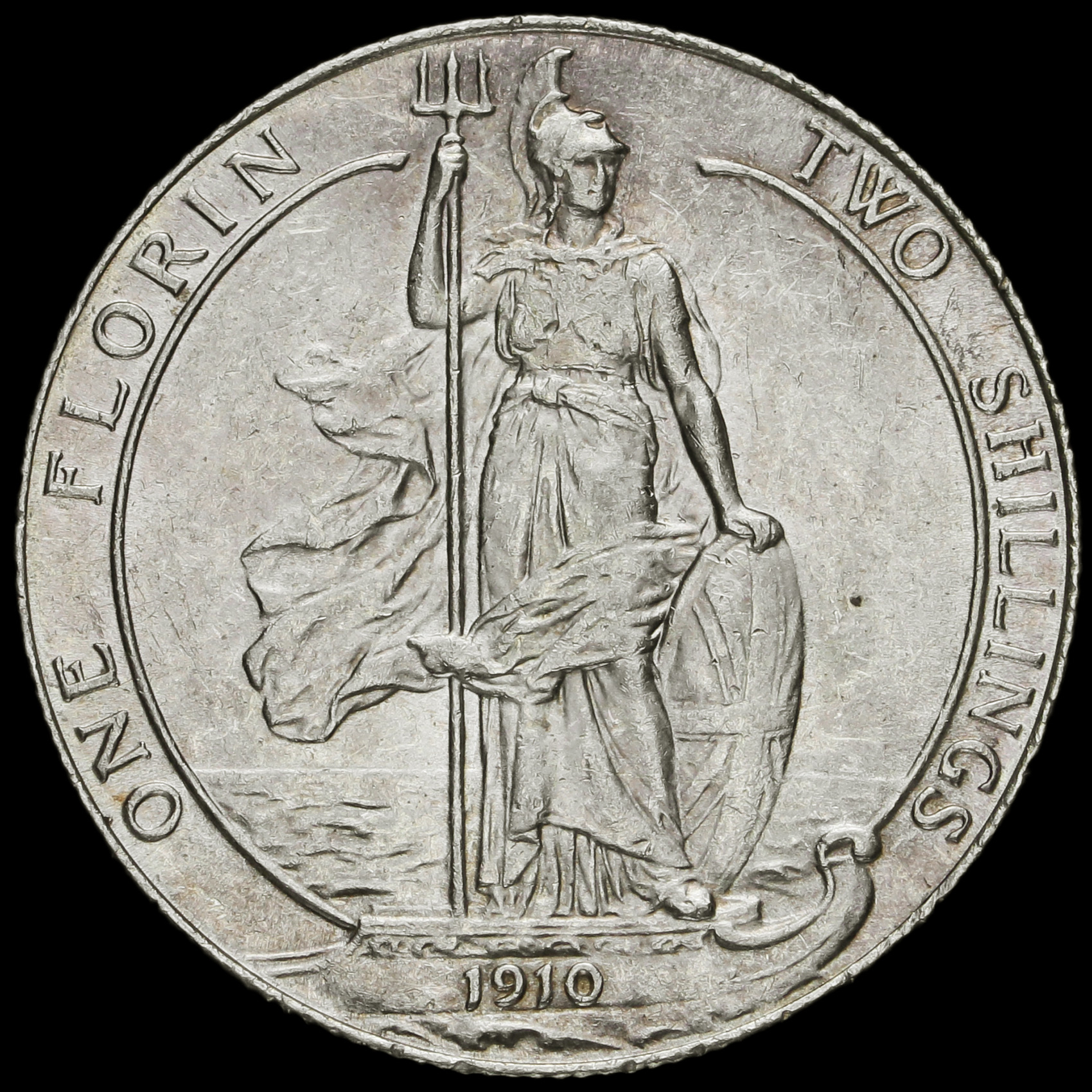 1910 Edward VII Silver Florin, Scarce, Near EF