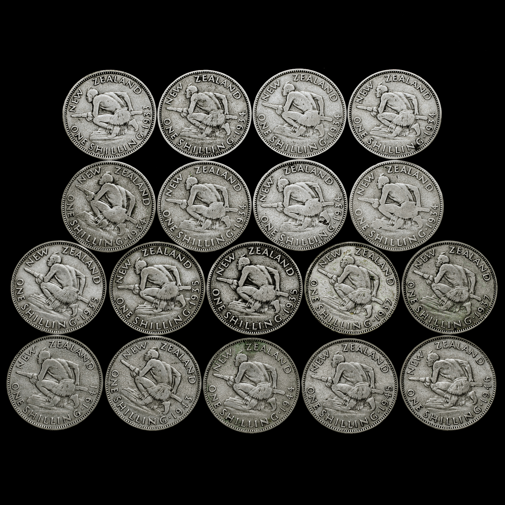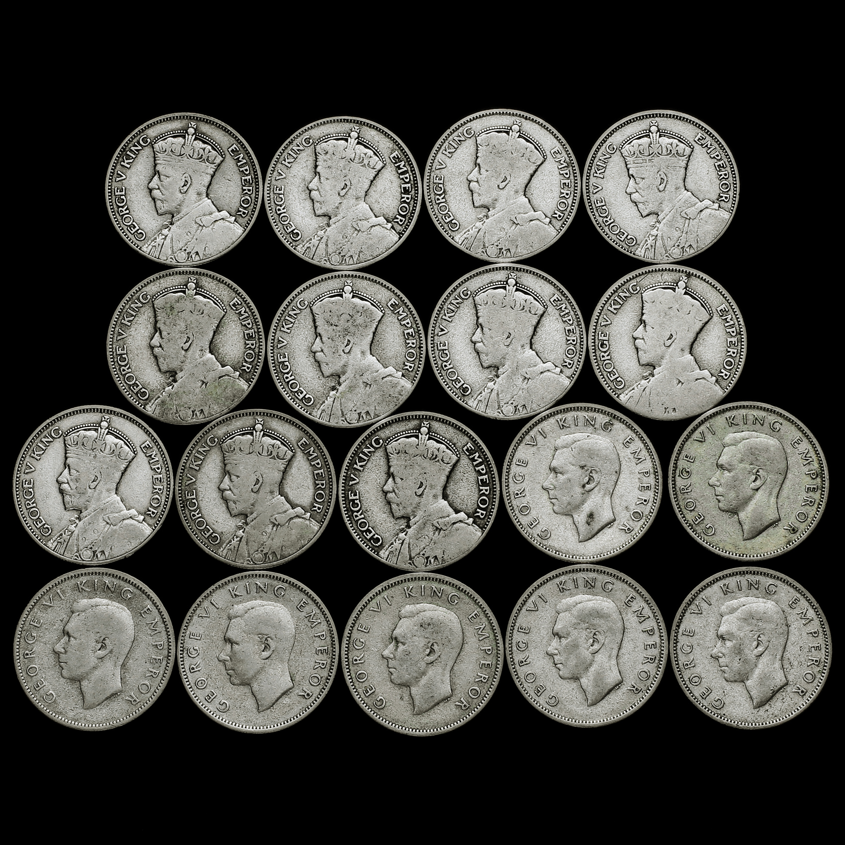 18 x New Zealand George V Silver Shillings