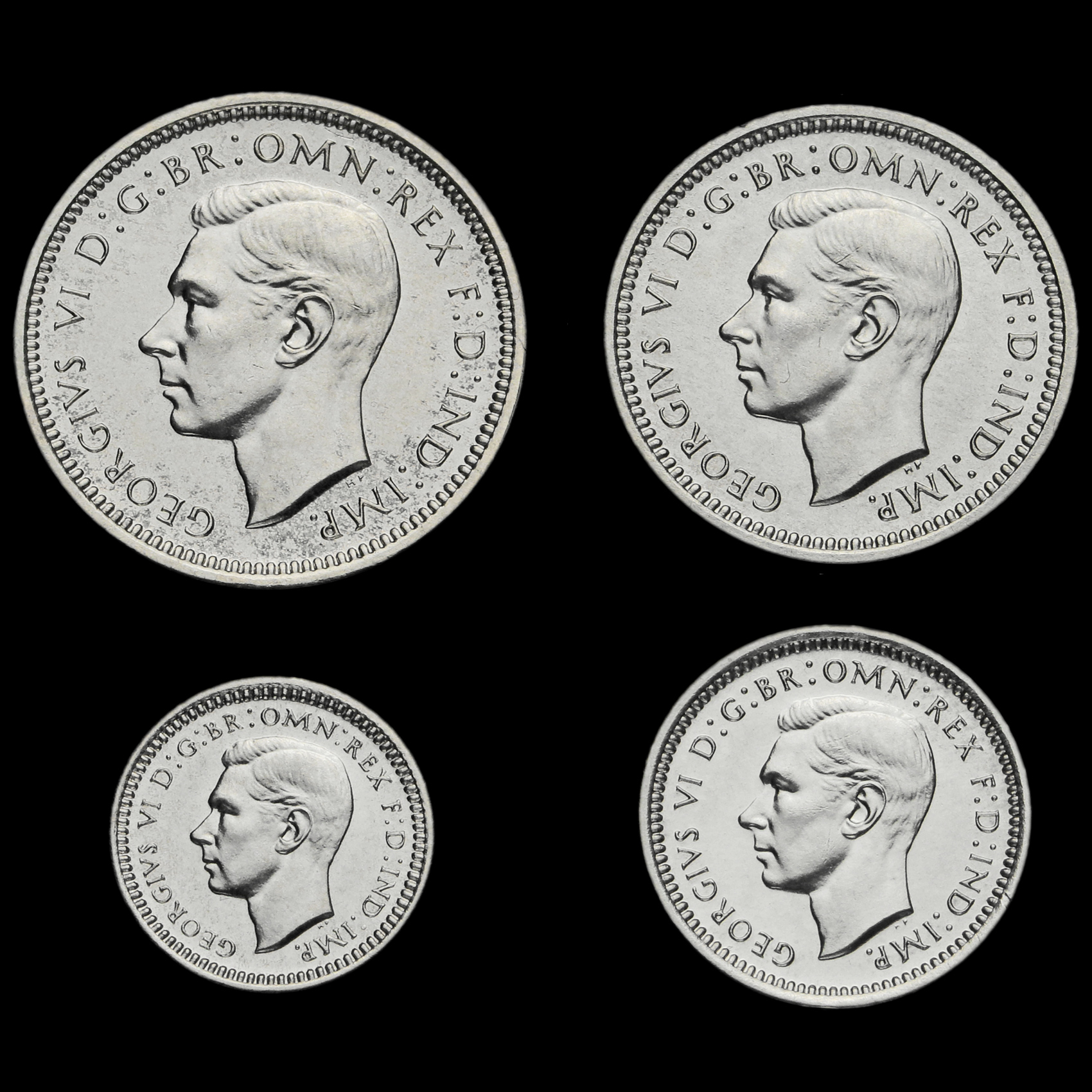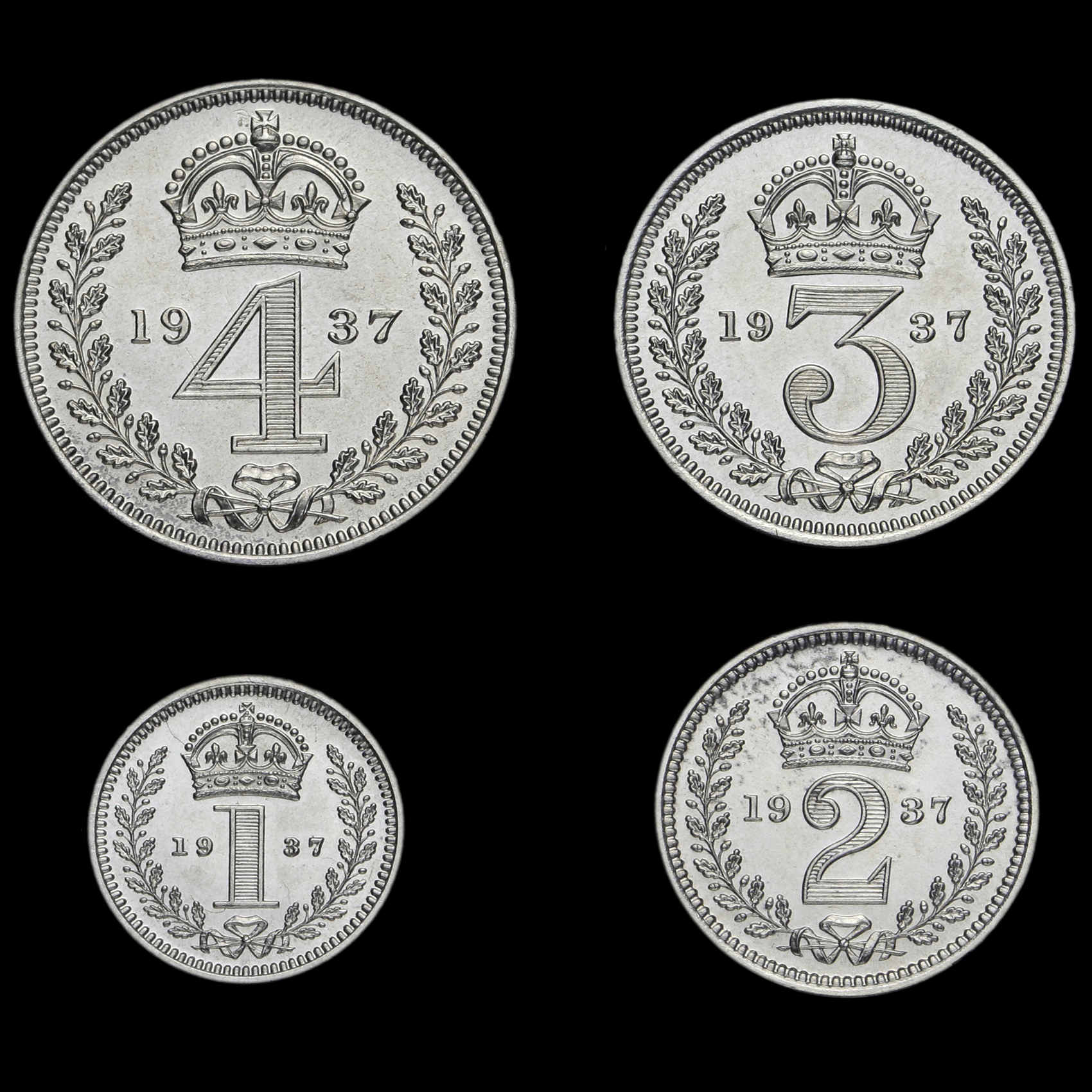 Set comprises of penny, twopence, threepence and fourpence