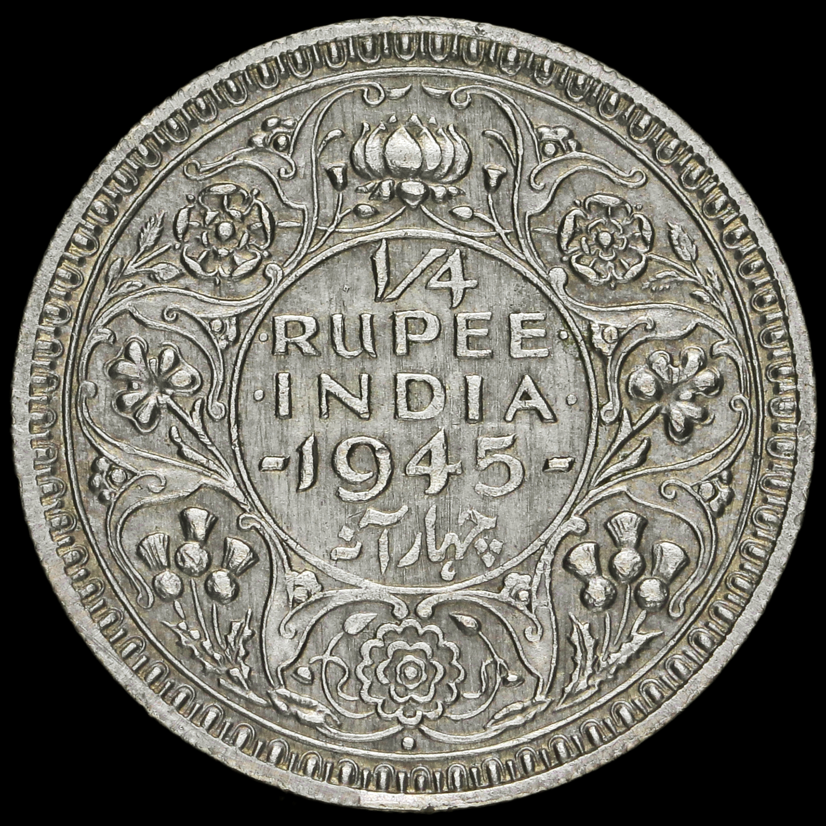 British India 1945 George VI Silver 1/4 Rupee