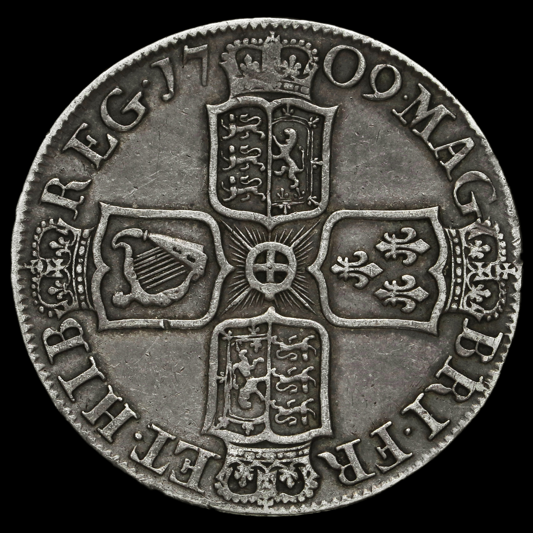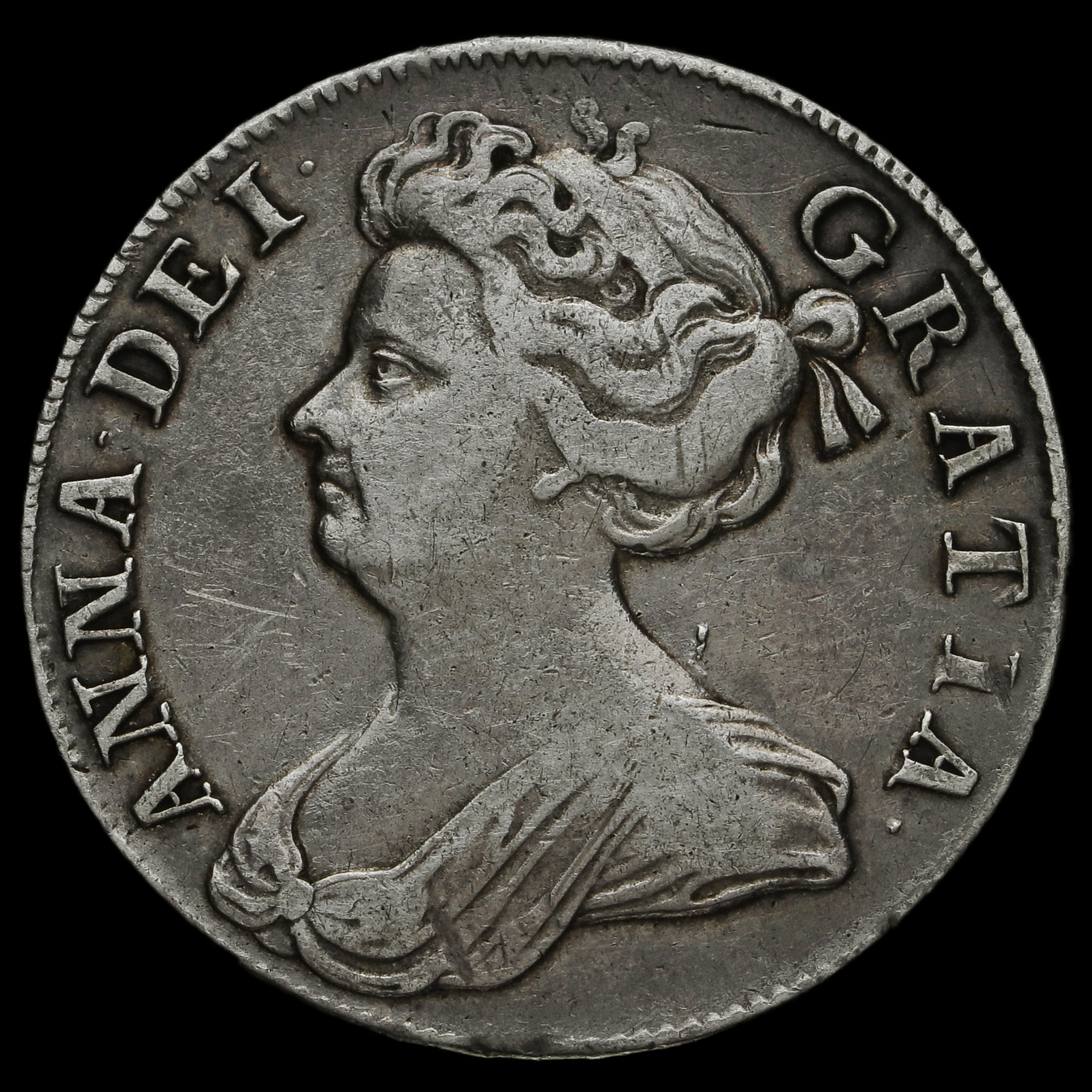 1709 Queen Anne Early Milled Silver Octavo Half Crown, AVF / VF