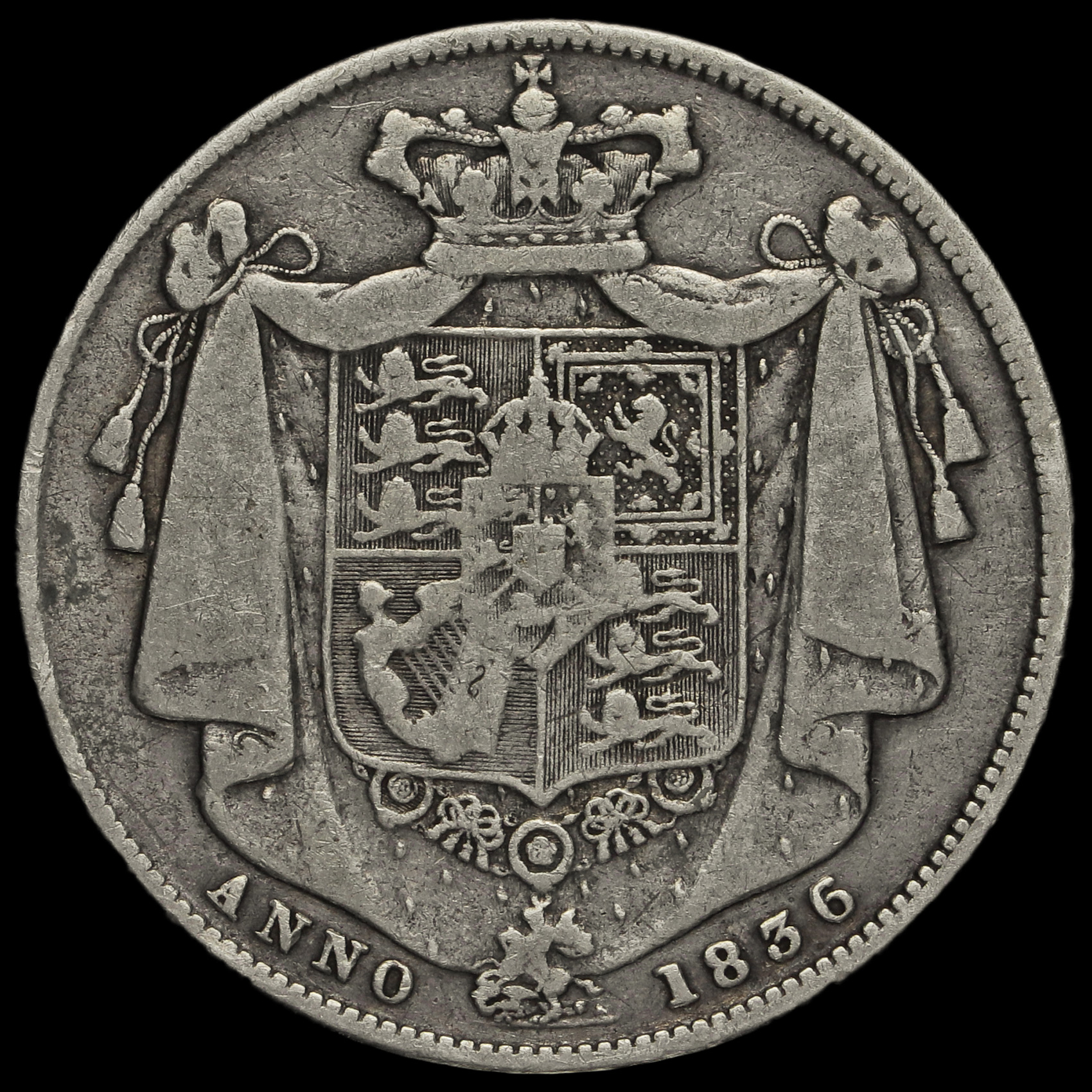 1836 William IV Milled Silver Half Crown, Fine #3