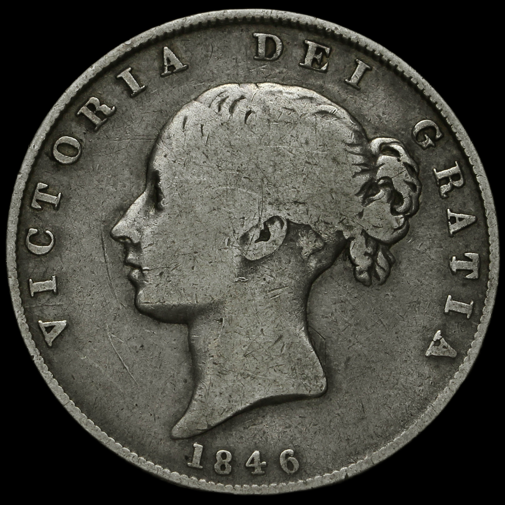 1846 Queen Victoria Young Head Silver Half Crown