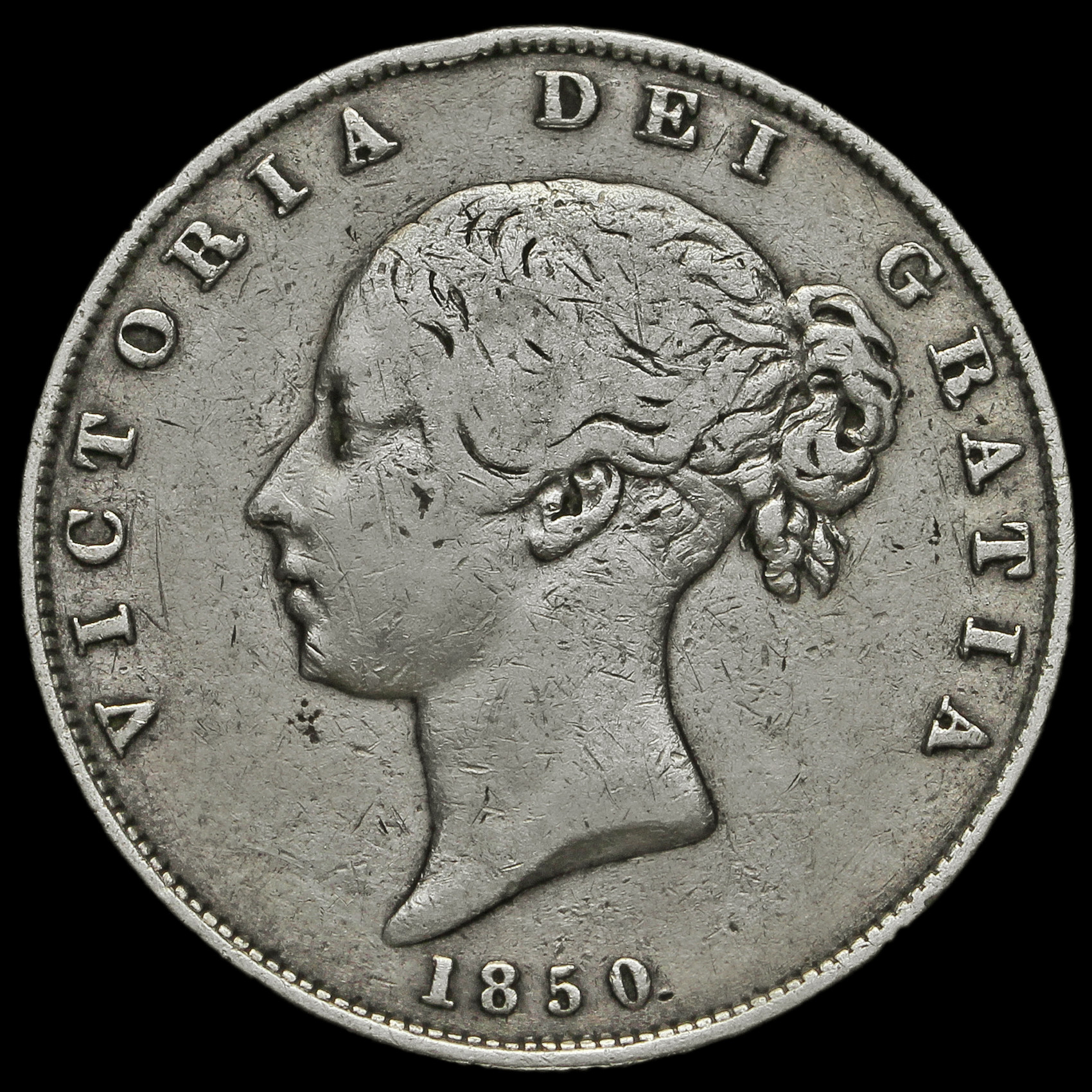 1850 Queen Victoria Young Head Silver Half Crown
