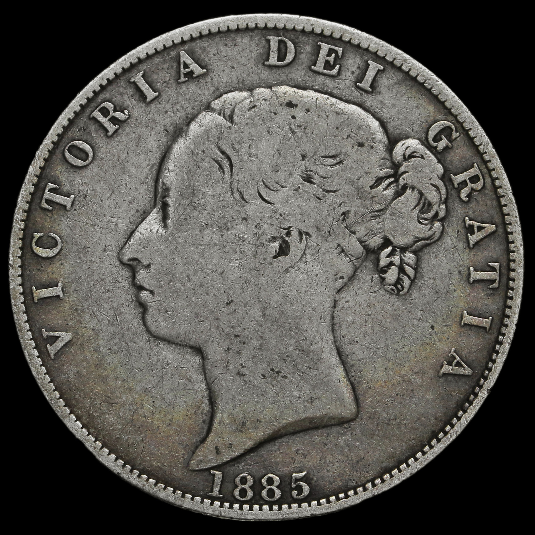 1885 Queen Victoria Young Head Silver Half Crown