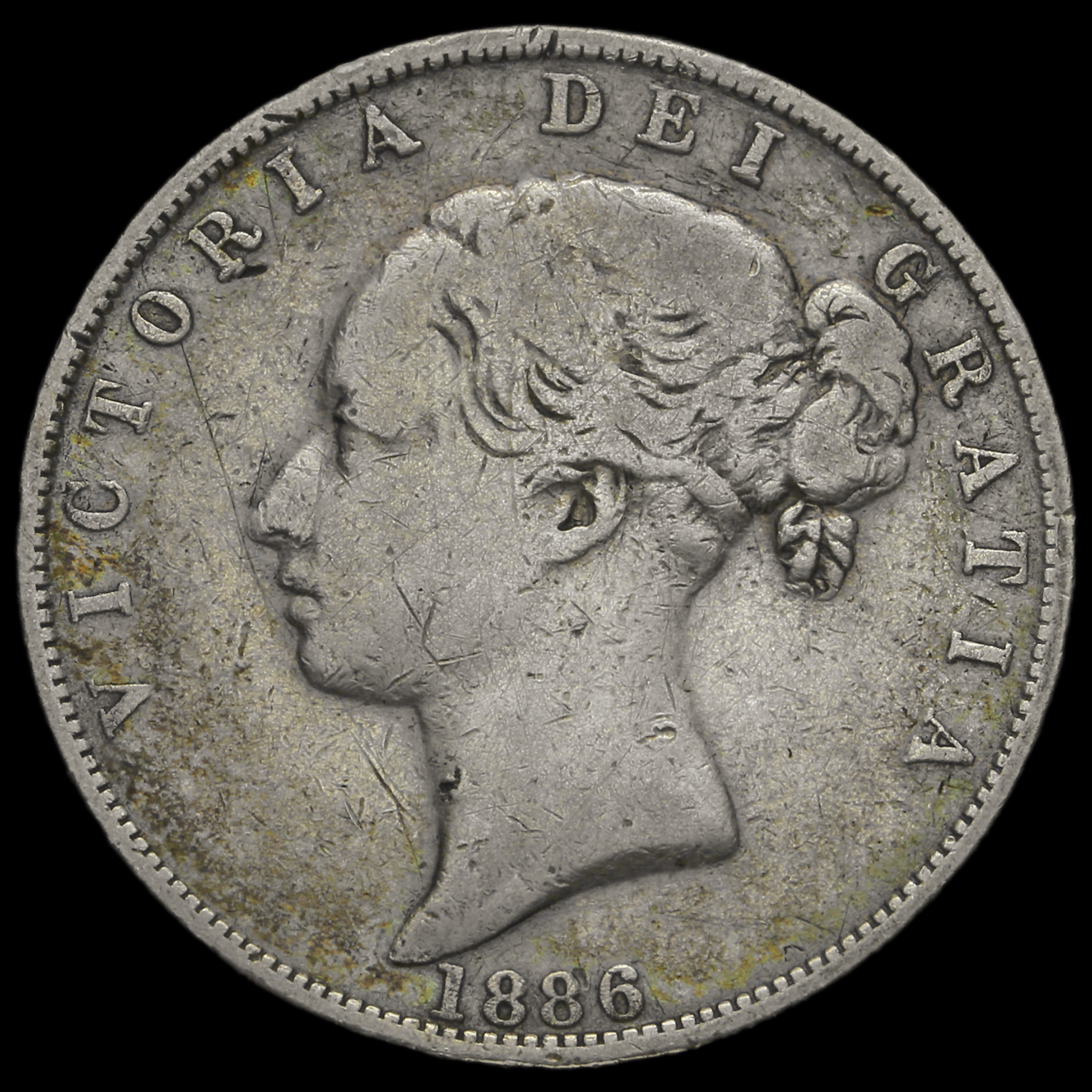 1886 Queen Victoria Young Head Silver Half Crown, Fine