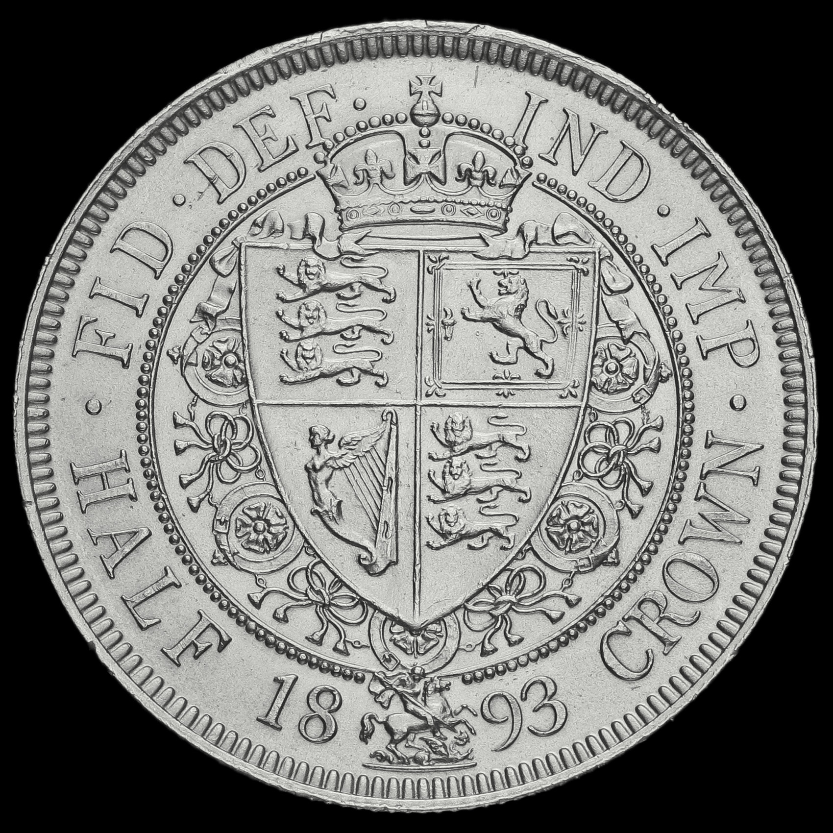1893 Queen Victoria Veiled Head Silver Half Crown