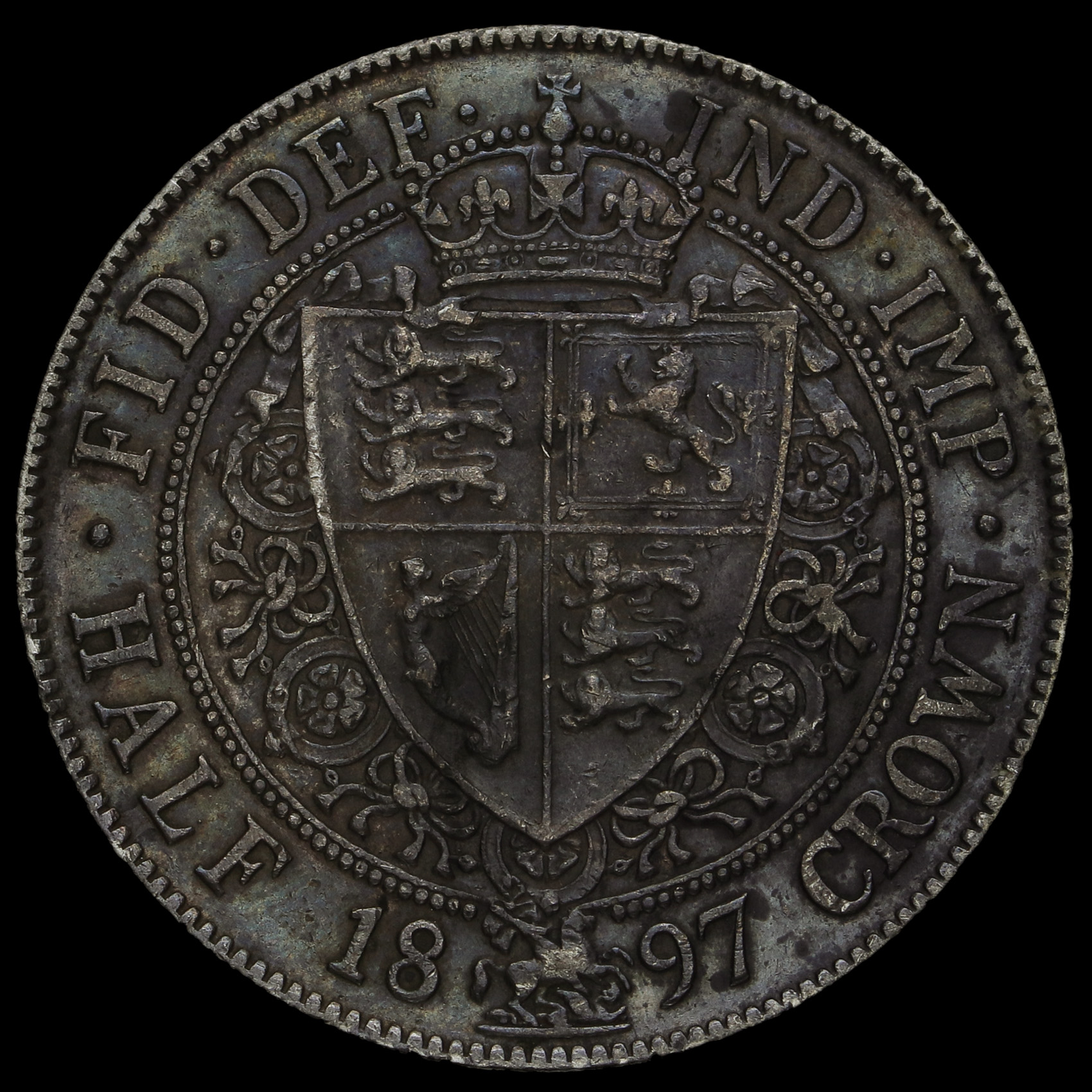 1897 Queen Victoria Veiled Head Silver Half Crown, GVF+