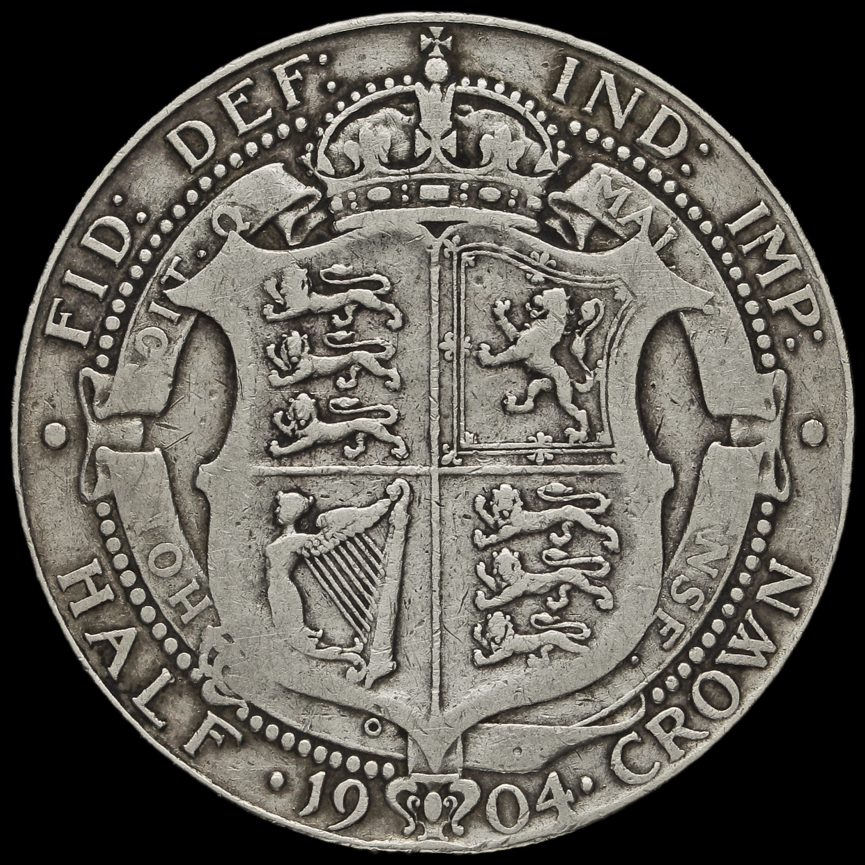 1904 Edward VII Silver Half Crown, Rare, GF #2