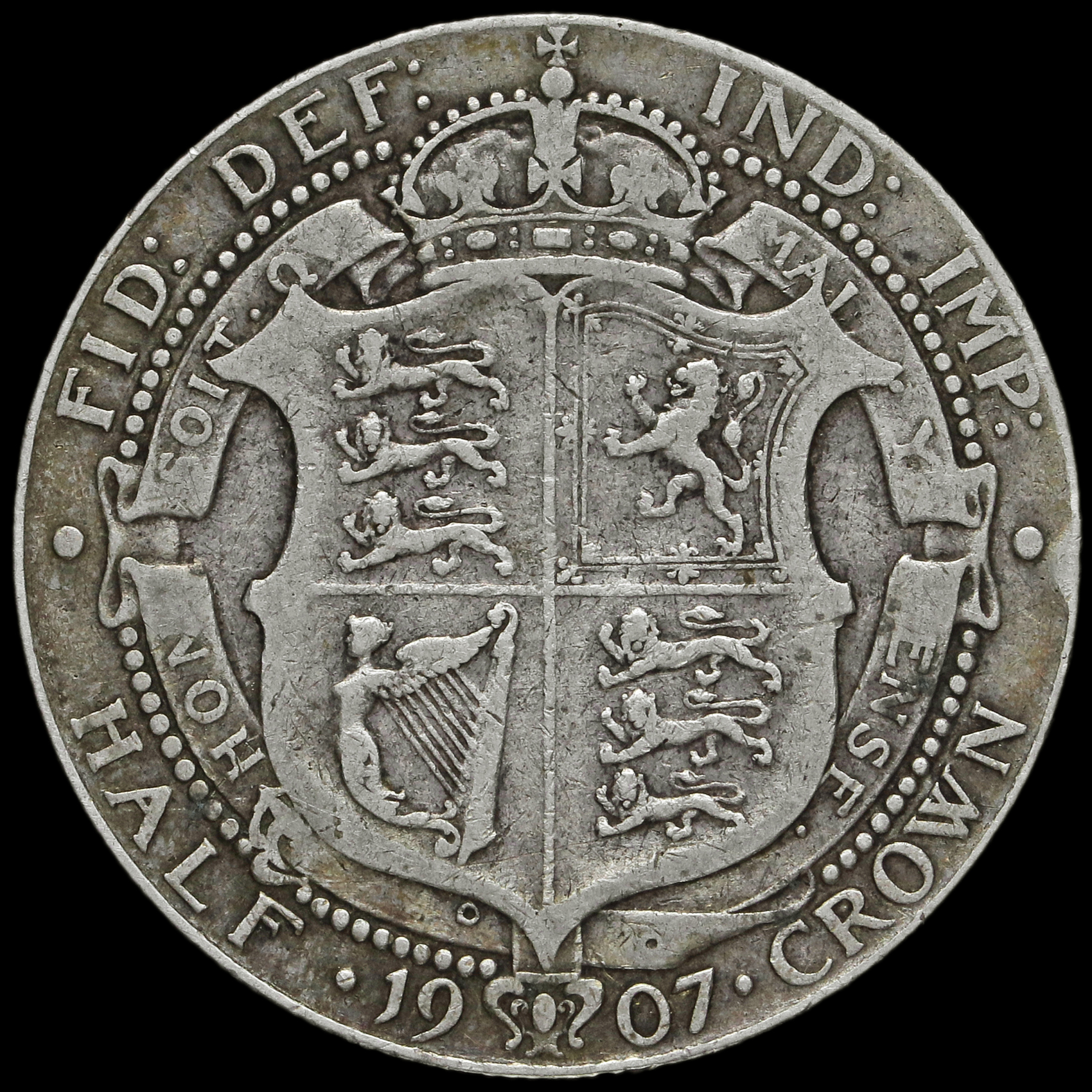 1907 Edward VII Silver Half Crown, Fine / GF