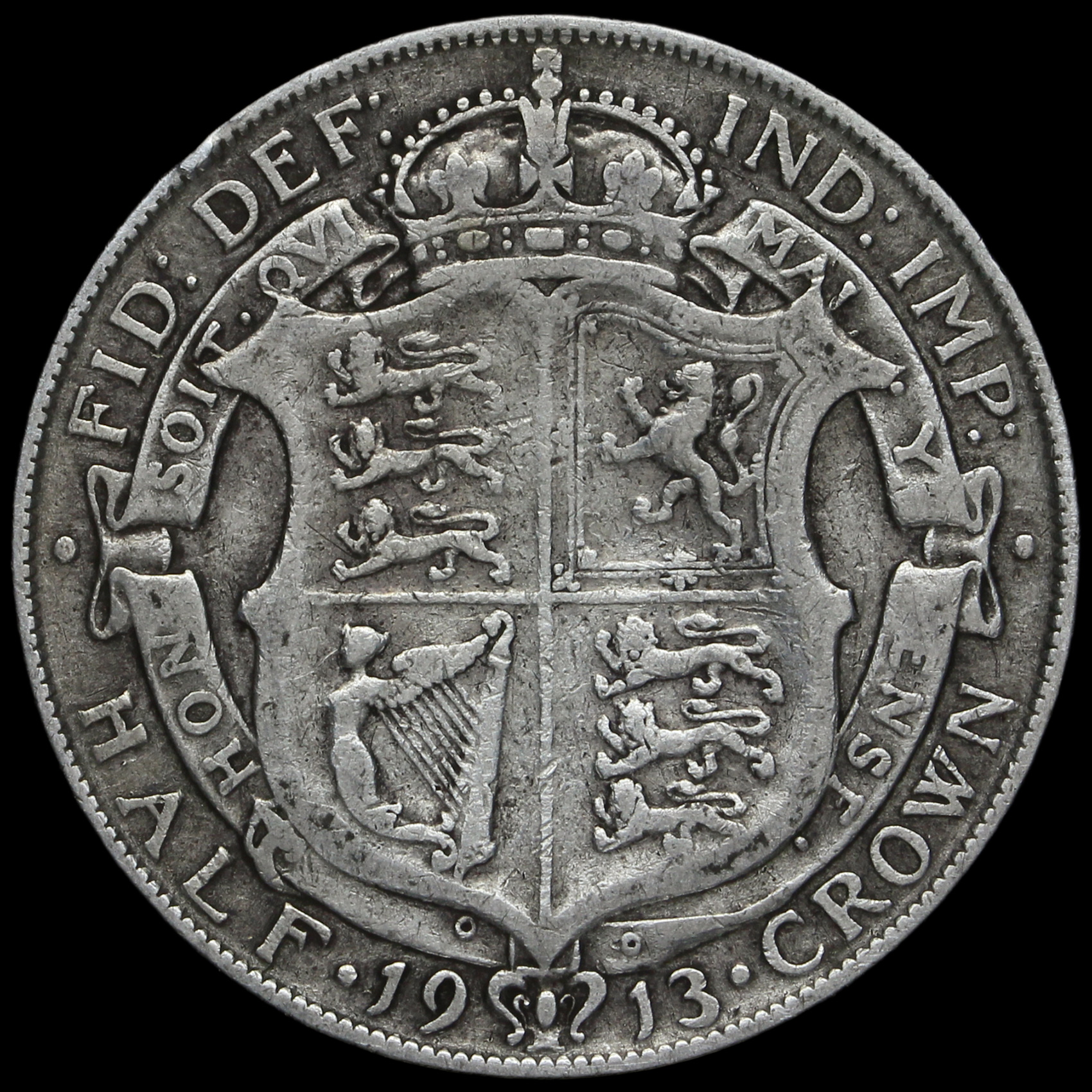 1913 George V Silver Half Crown, Rare, Fine