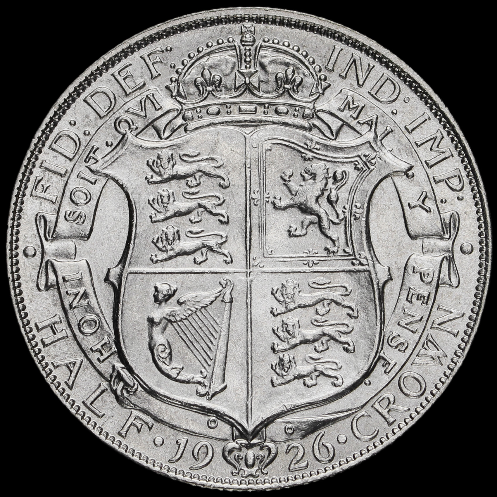 1926 George V Silver Half Crown, Second Coinage, Rare, A/UNC