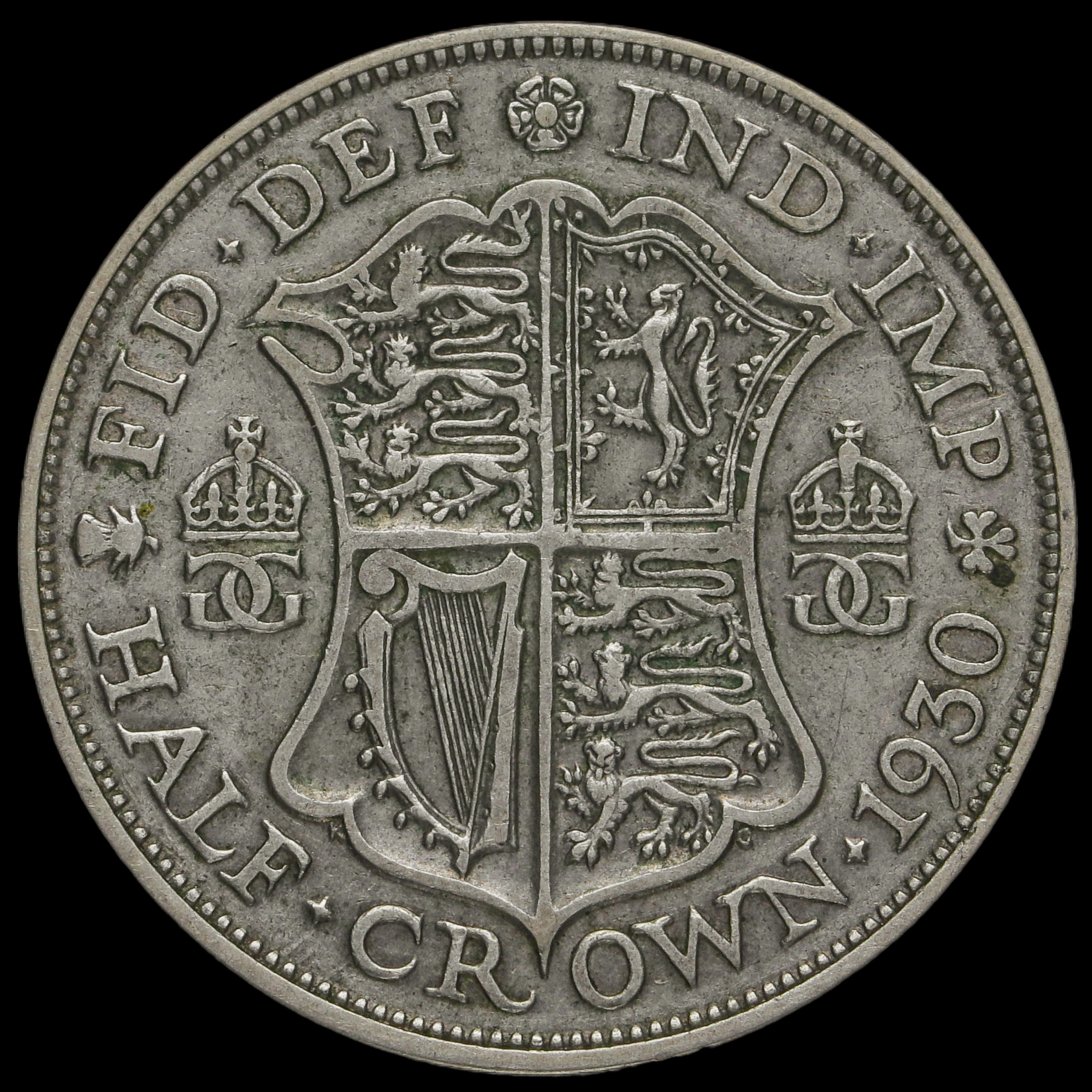 1930 George V Silver Half Crown, Very Rare, GF / AVF