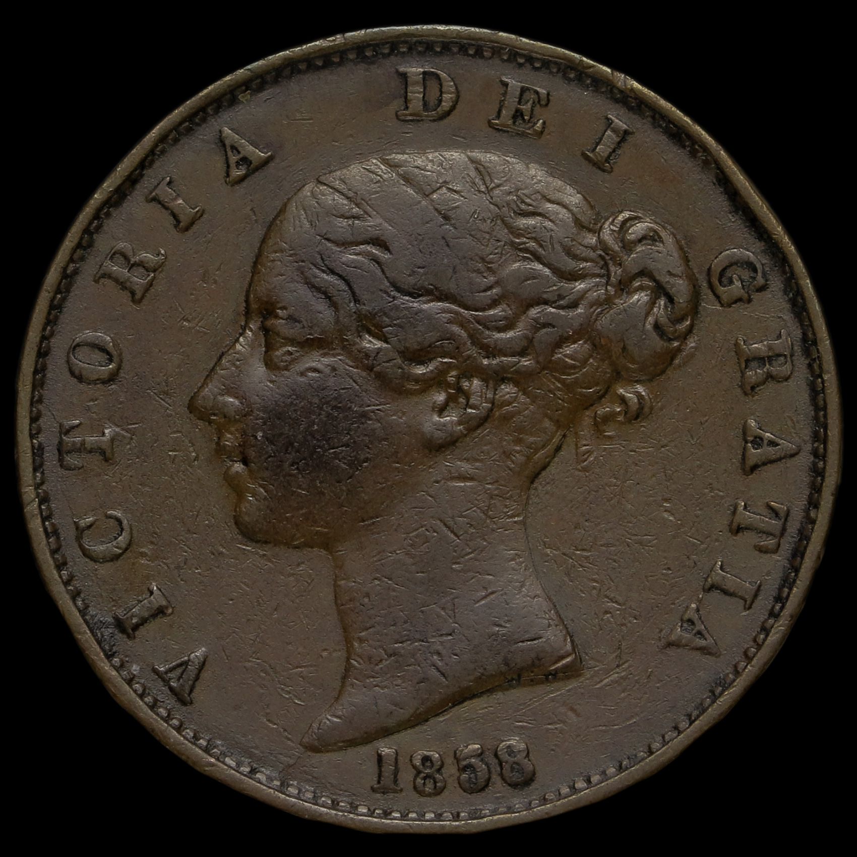 1858 Queen Victoria Young Head Copper Halfpenny