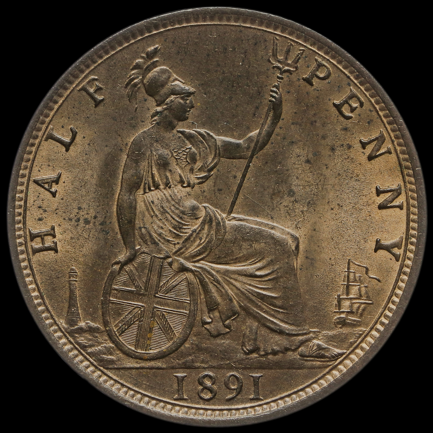 1891 Queen Victoria Bun Head Halfpenny