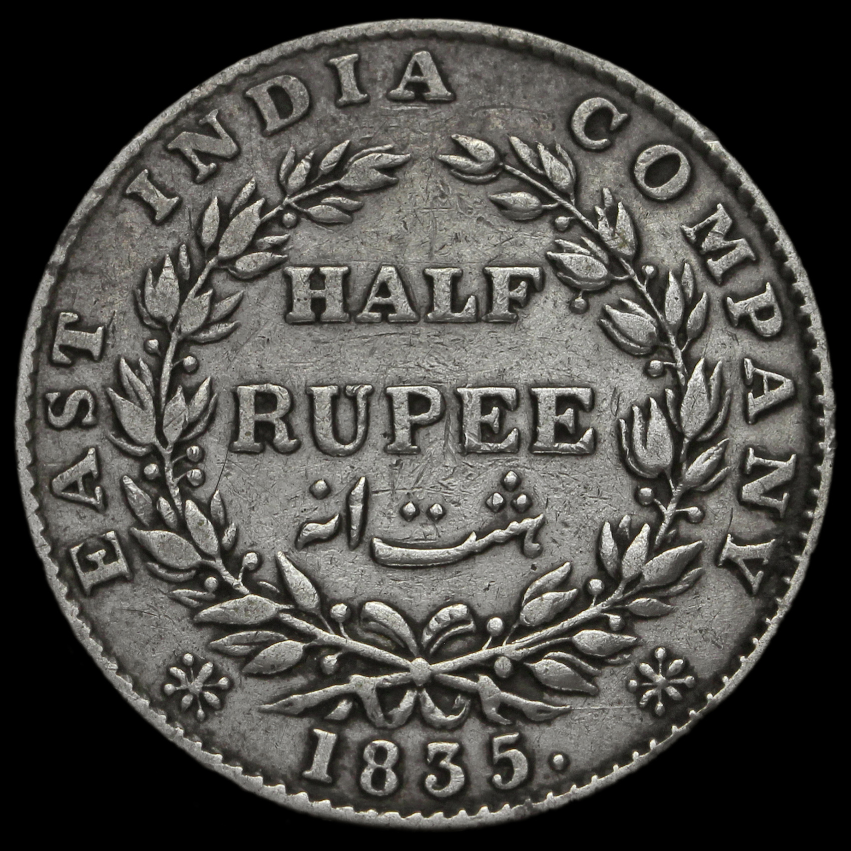 British India 1835 William IV Half Rupee