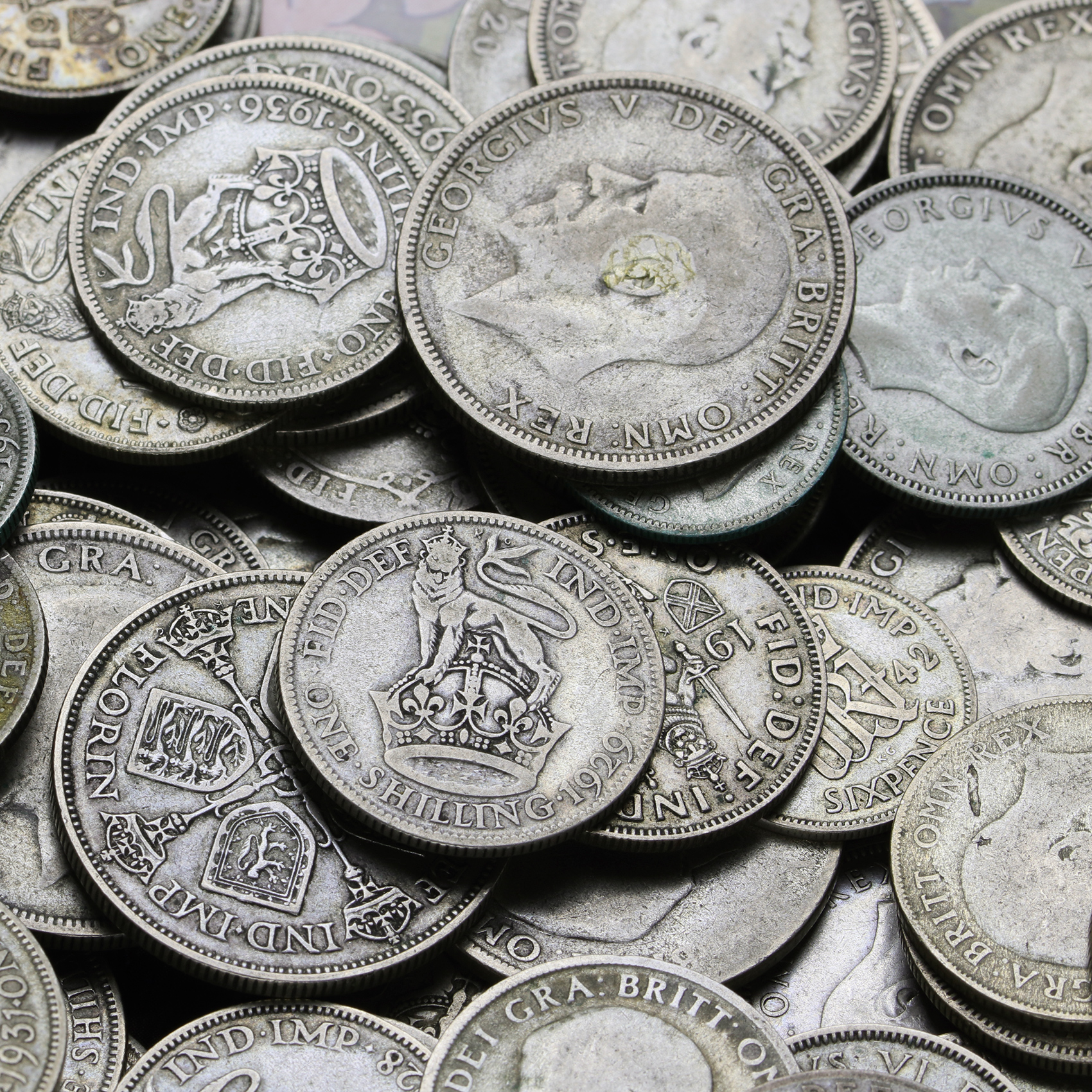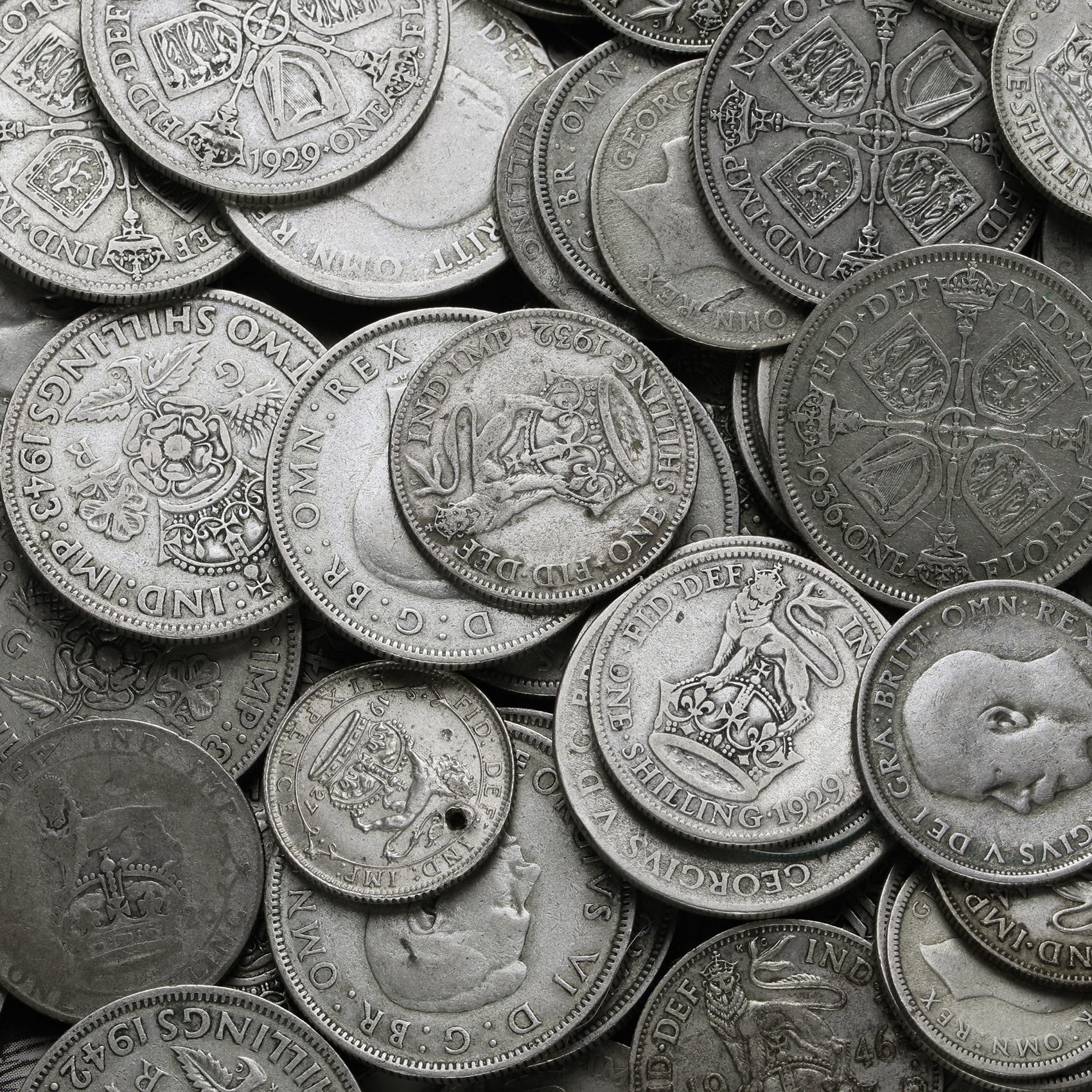 500 grams of Circulated Pre 1947 British .500 Silver Bullion Investment Coins