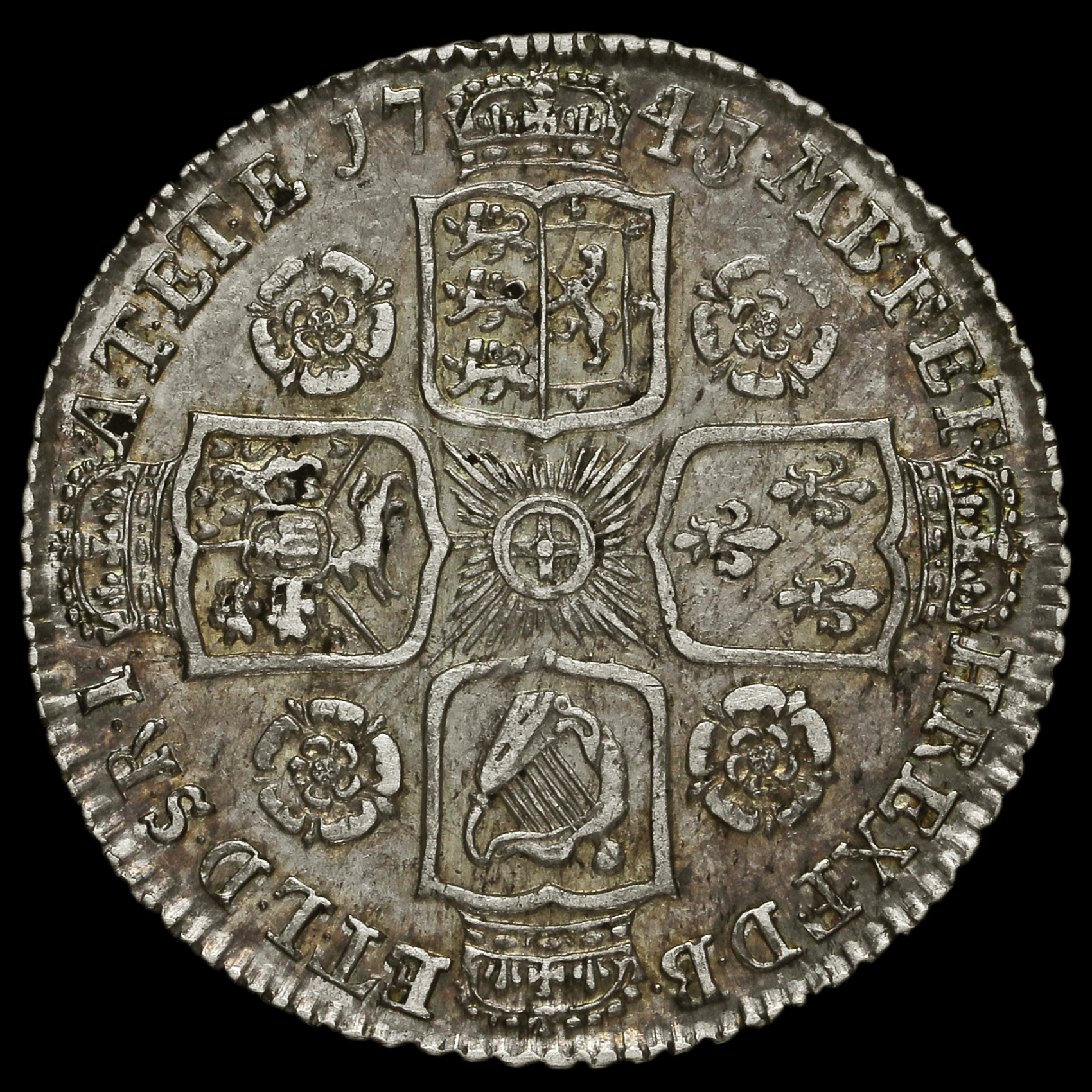 1745/3 George II Early Milled Silver Shilling