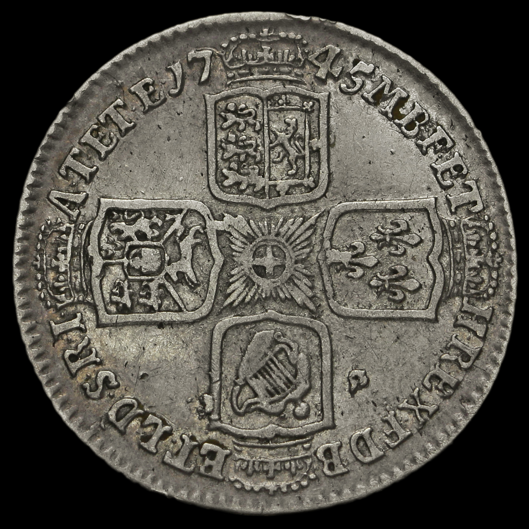 1745 George II Early Milled Silver Lima Shilling