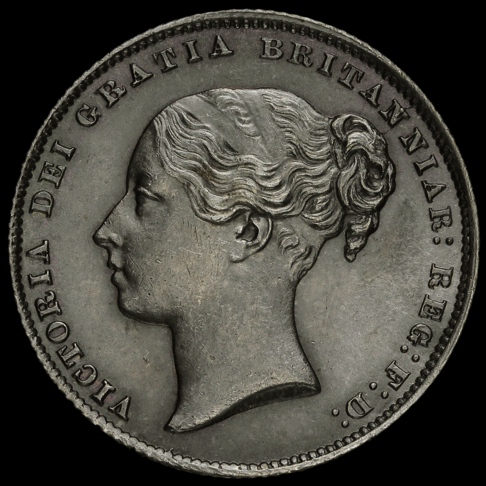 1866 Queen Victoria Young Head Silver Shilling, A/UNC