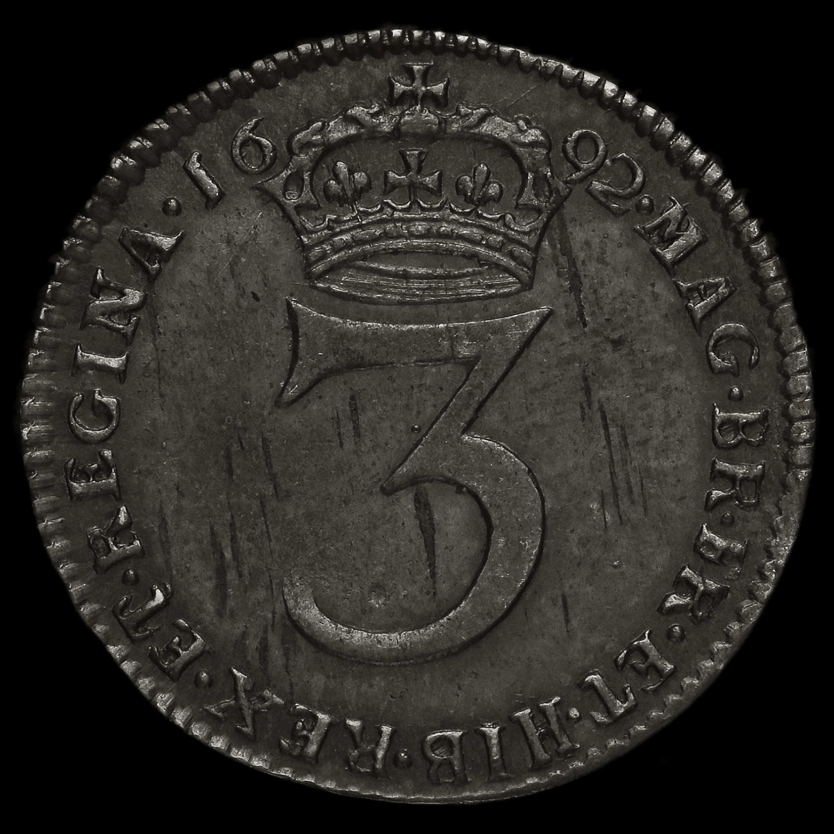 1692 William and Mary Early Milled Silver Maundy Threepence