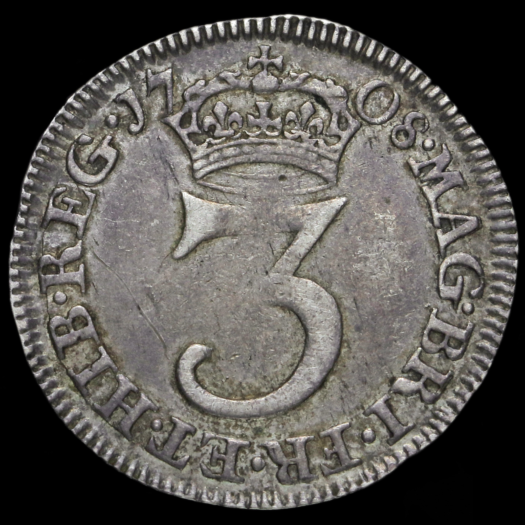 1708 Queen Anne Early Milled Silver Maundy Threepence