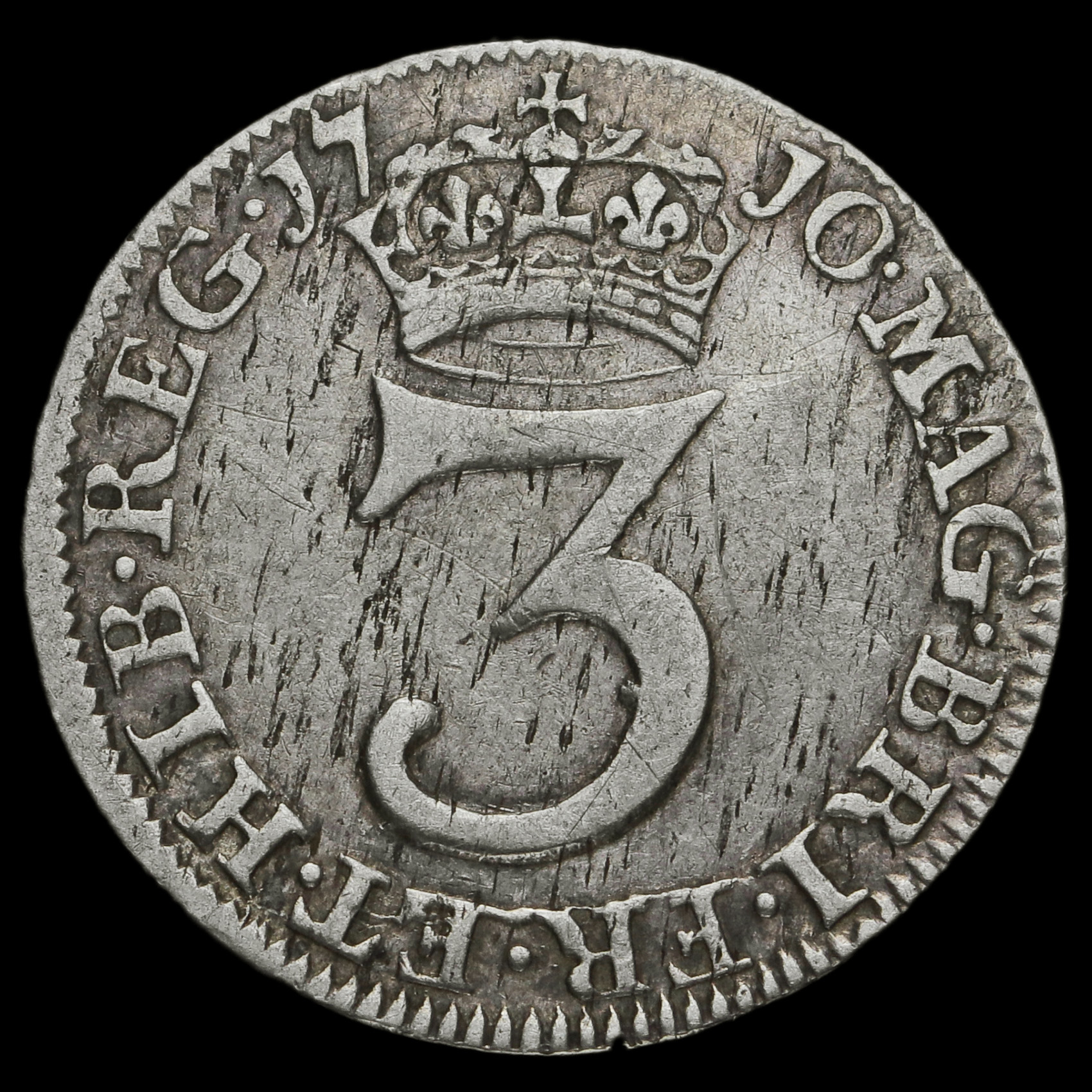 1692 William and Mary Early Milled Silver Maundy Threepence, Rare