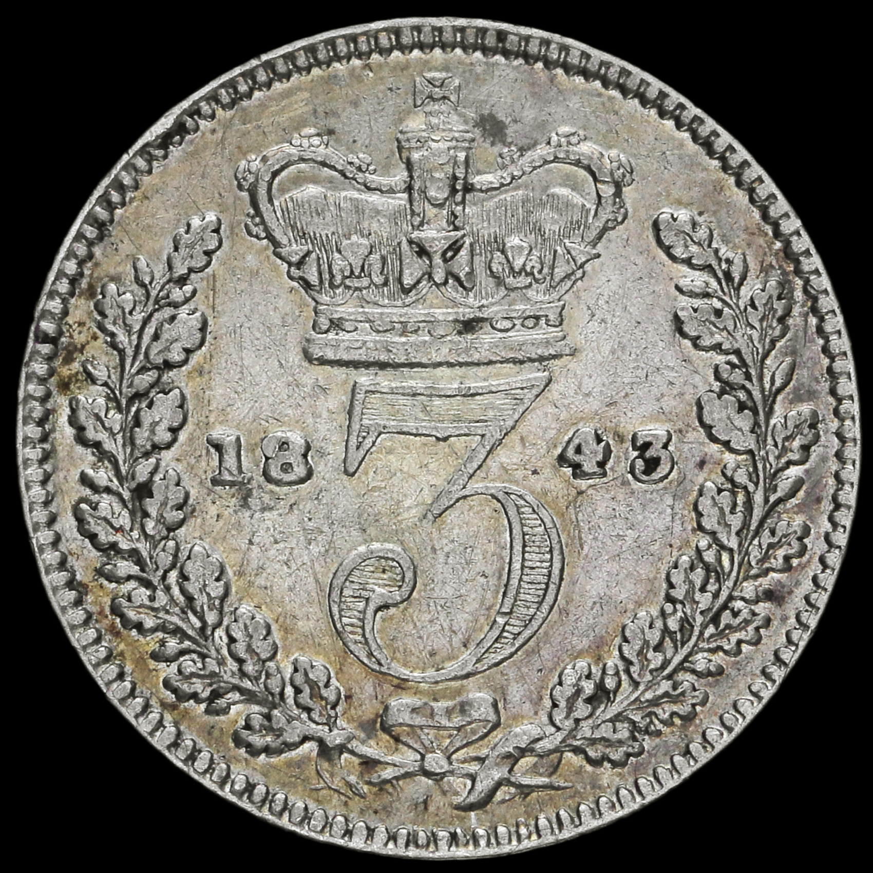 1843 Queen Victoria Young Head Silver Threepence