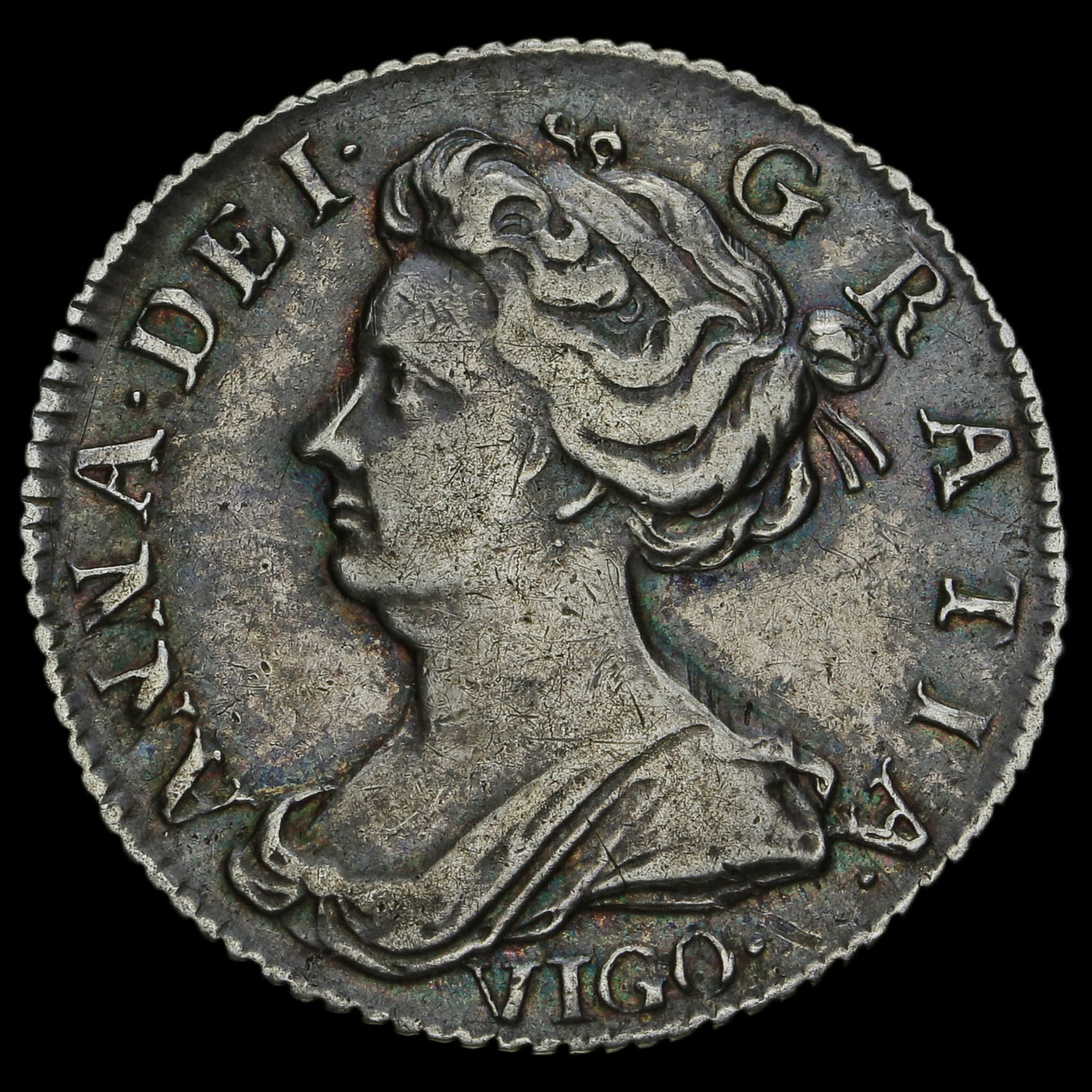 1703 Queen Anne Early Milled Silver Vigo Sixpence