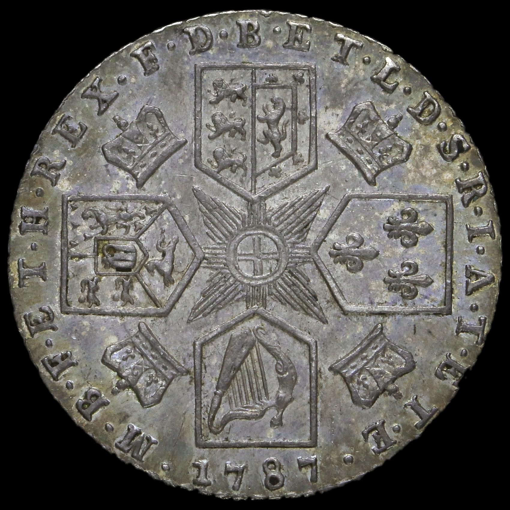 1787 George III Early Milled Silver Sixpence, No Hearts, GVF