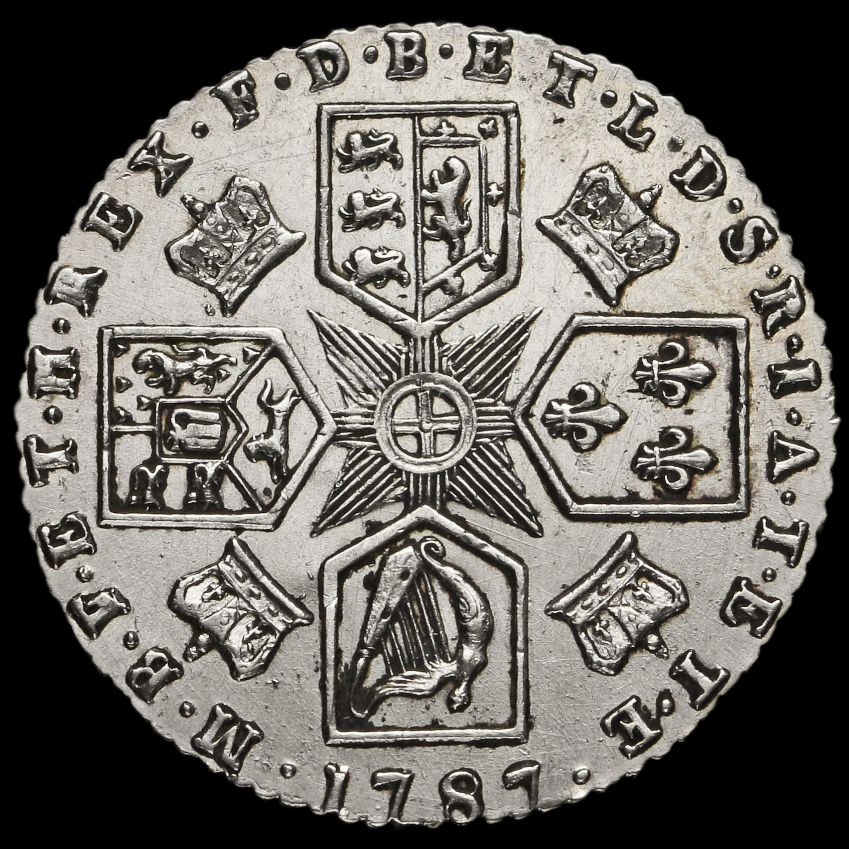 1787 George III Early Milled Silver Sixpence, No Hearts, G/EF #2