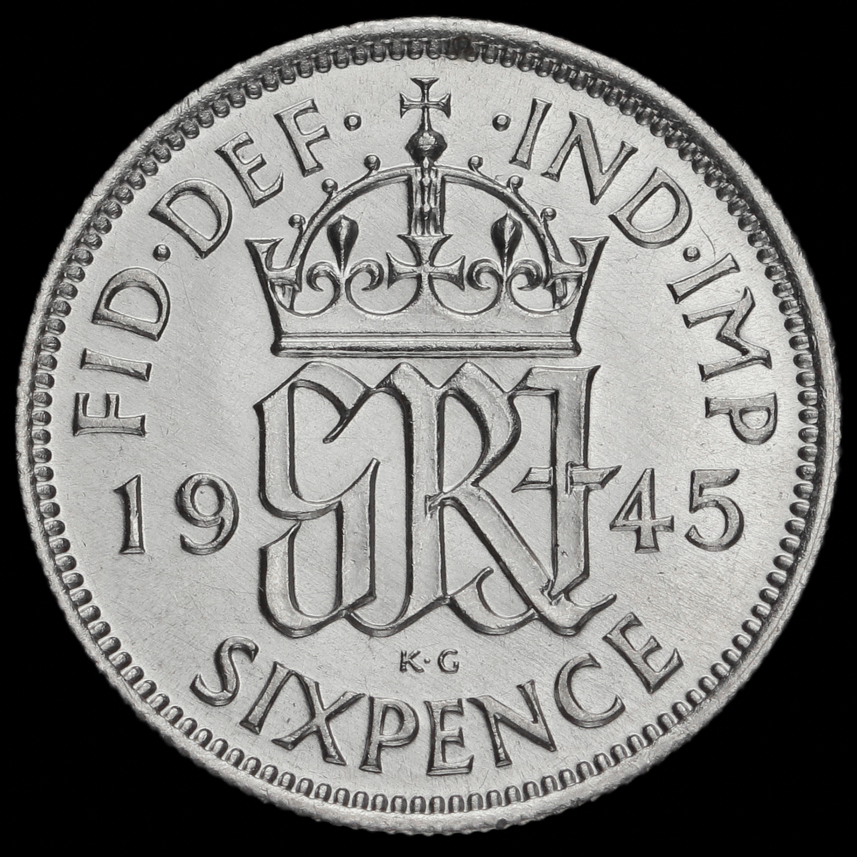 1945 George VI Silver Sixpence, A/UNC