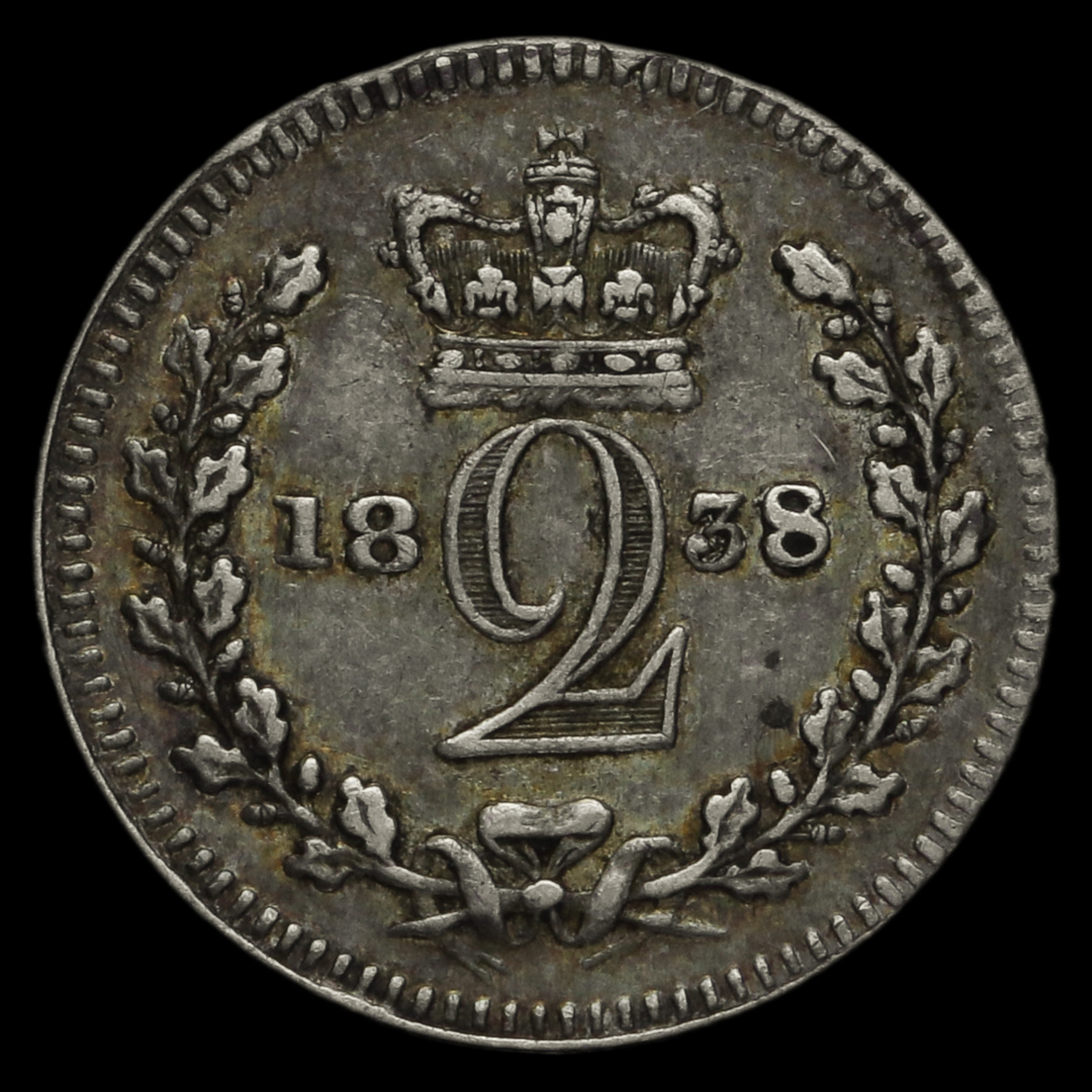 1838 Queen Victoria Young Head Silver Maundy Twopence, VF