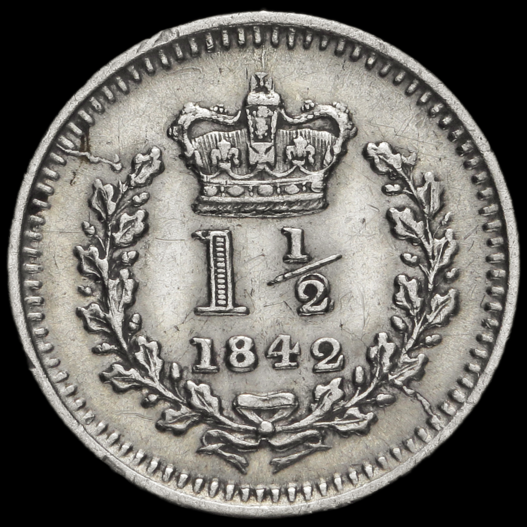 1842 Queen Victoria Young Head Silver Three-Halfpence, Scarce, GVF