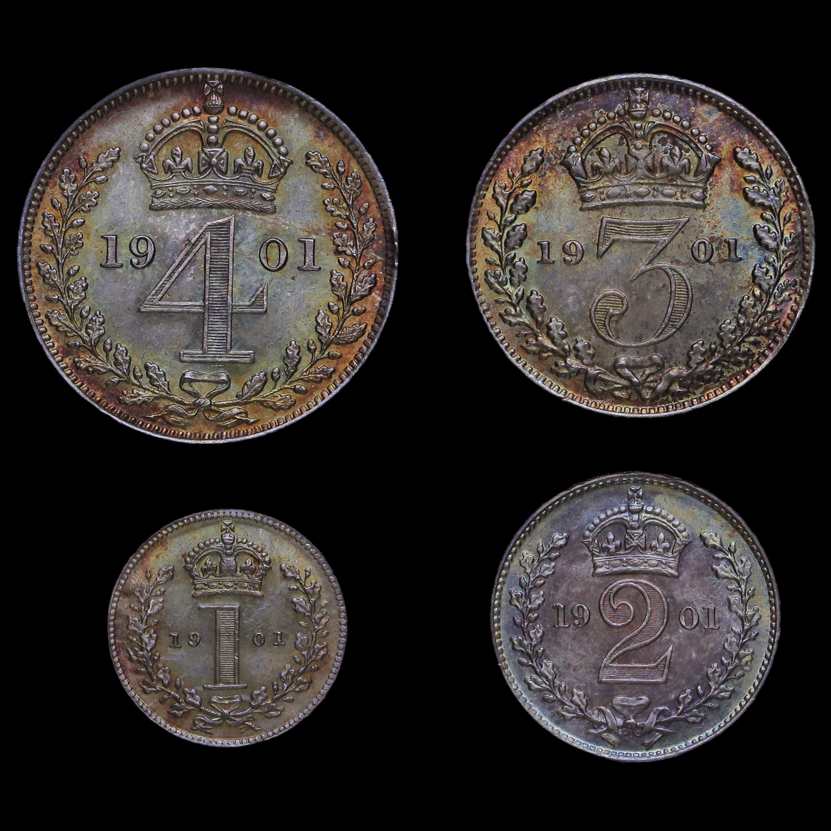 1901 Queen Victoria Veiled Head Silver Maundy Set