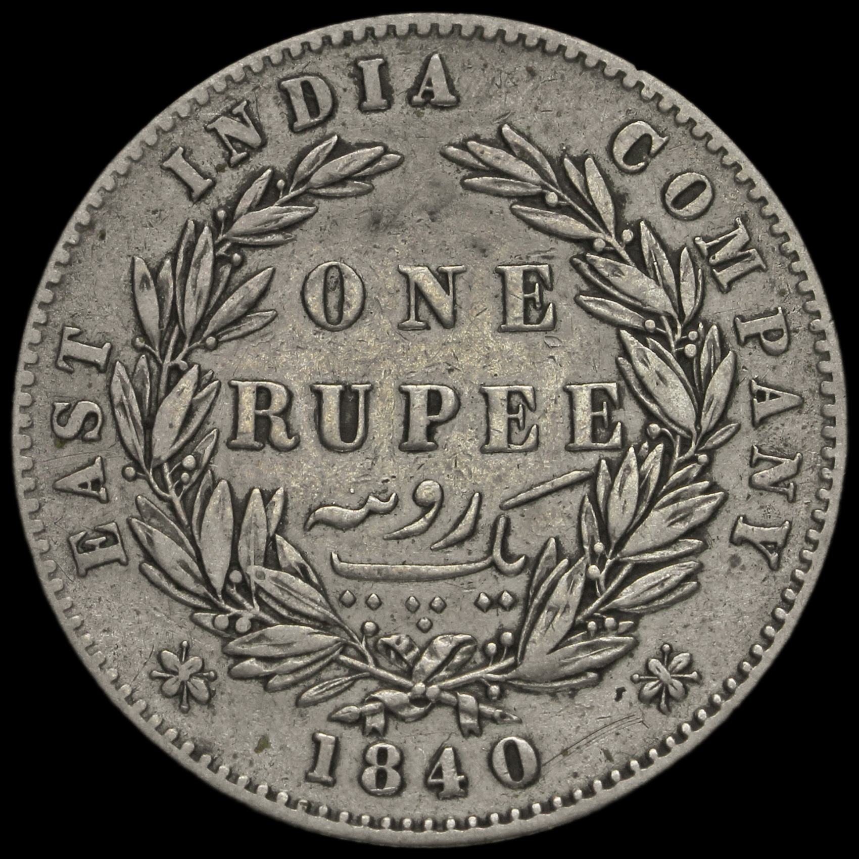 British India 1840 Queen Victoria One Rupee