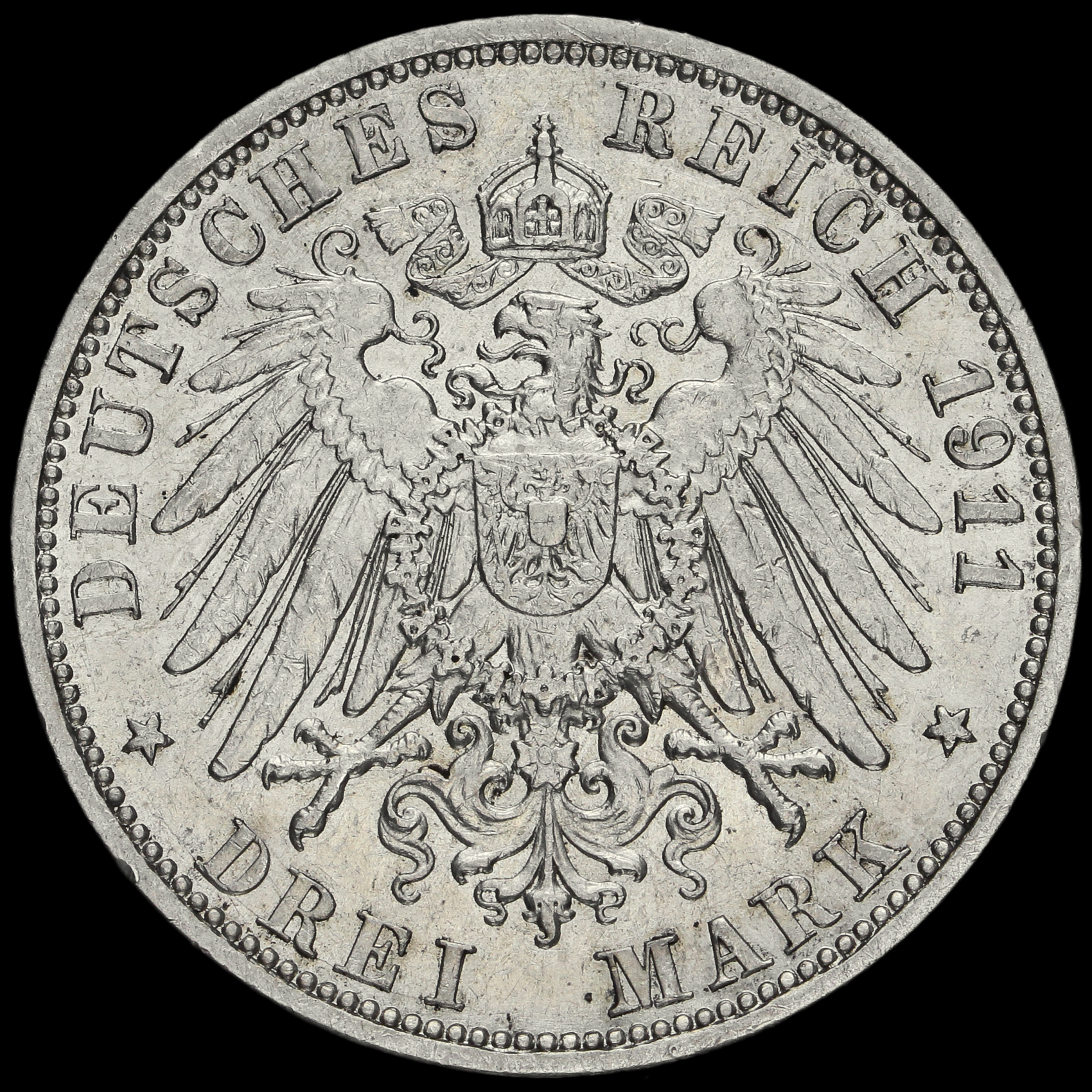 German States, Prussia Wilhelm II 1911A Silver 3 Mark